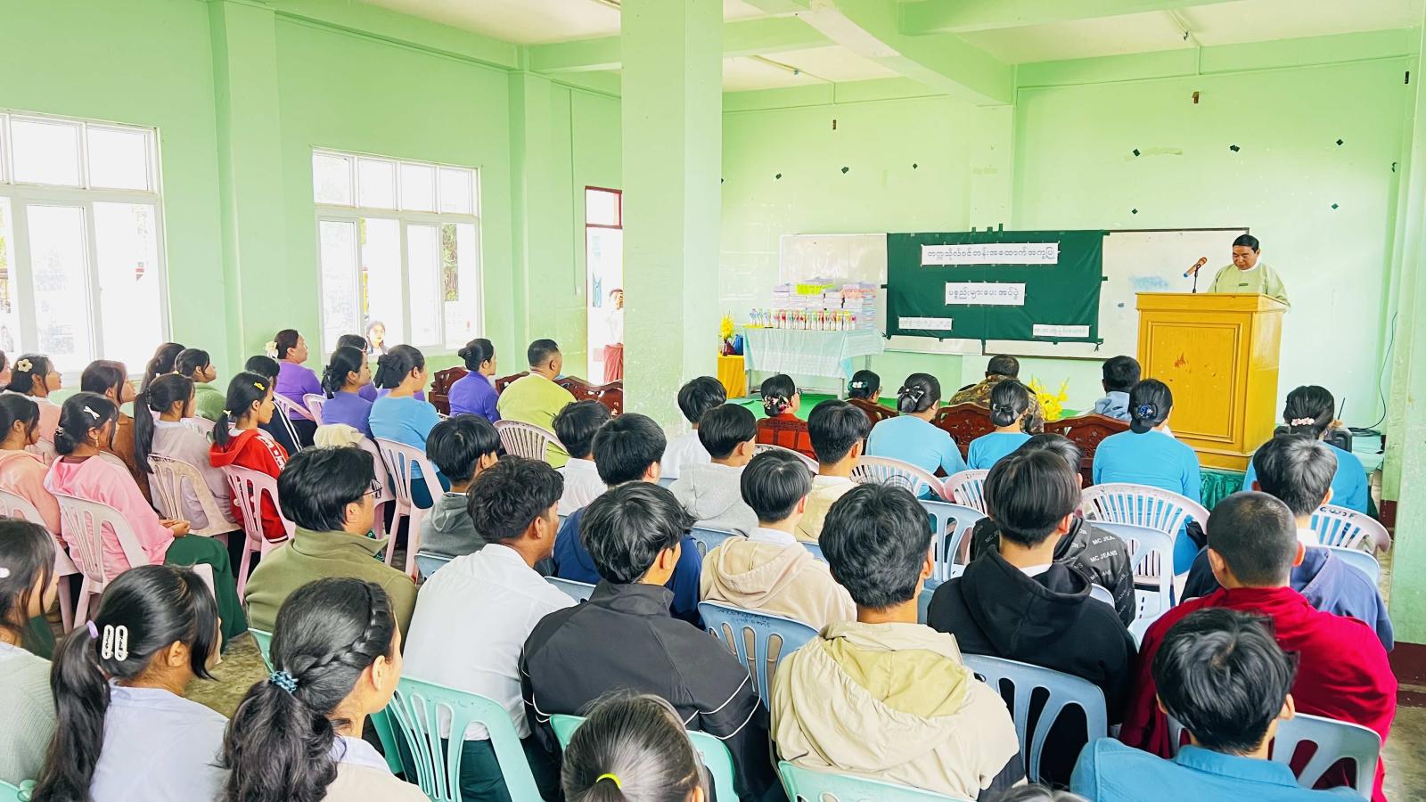 ရှမ်းပြည်နယ်(အရှေ့ပိုင်း)၊ မိုင်းယောင်းမြို့နယ် စီမံခန့်ခွဲရေးနှင့်အုပ်ချုပ်ရေးကော်မတီဥက္ကဋ္ဌ မြို့နယ်အုပ်ချုပ်ရေးမှူး ဦးစိုးသက်ဆွေသည် ယမန်နေ့က မြို့နယ်ပညာရေးမှူးရုံး အစည်းအဝေးခန်းမ၌ တက္ကသိုလ်ဝင်တန်းအောင်ချက်မြင့်မားရေး အထောက်အကူပြုပစ္စည်းများ ပေးအပ်ပွဲအခမ်းအနား တက်ရောက်သည်။