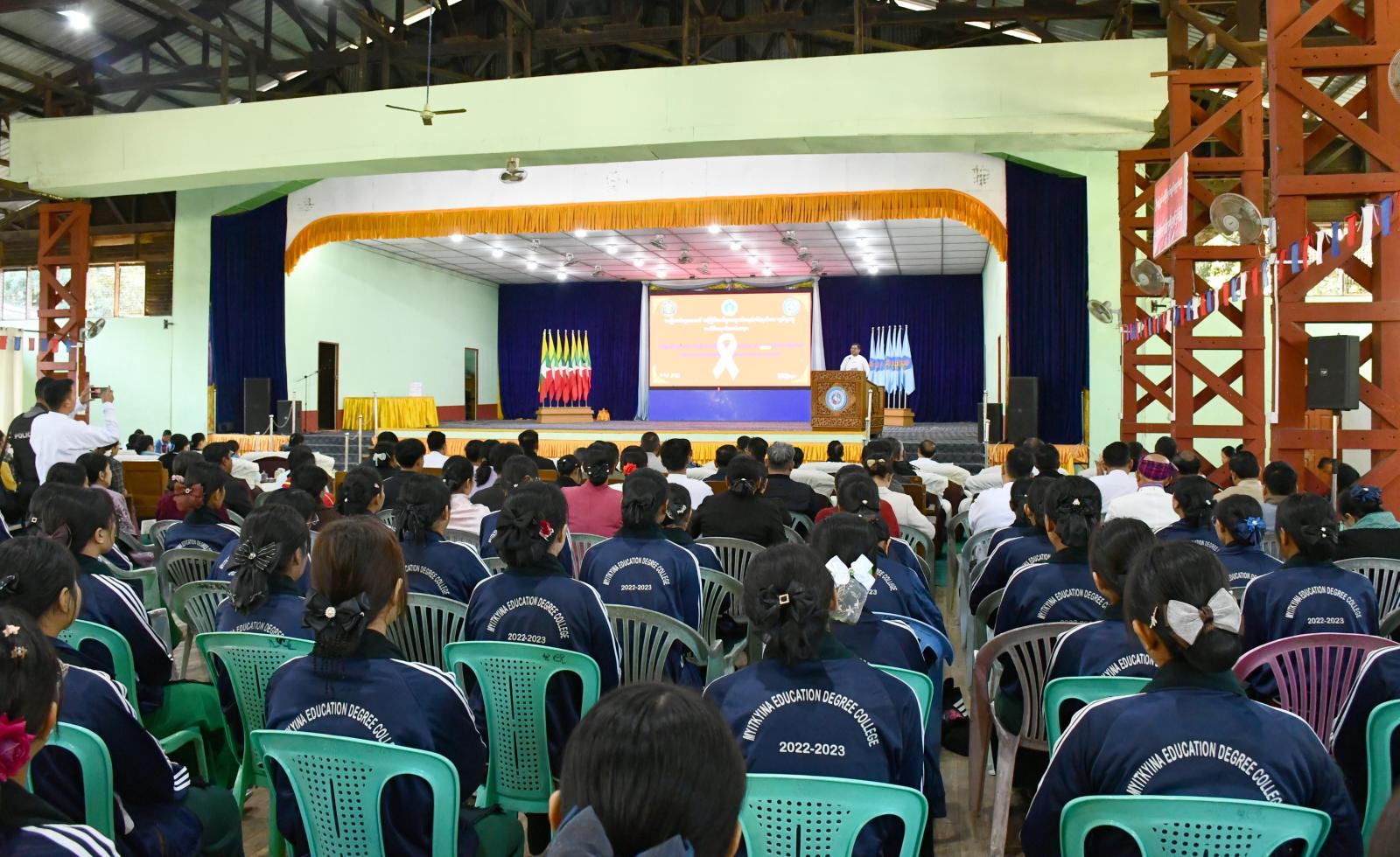 နှစ်စဉ် နိုဝင်ဘာ ၂၅ ရက်နေ့မှ ဒီဇင်ဘာ ၁၀ ရက်နေ့အထိကာလအား အမျိုးသမီးများအပေါ် အကြမ်းဖက်မှုပပျောက်ရေး (၁၆) ရက်တာ လှုပ်ရှားမှုကာလအဖြစ် သတ်မှတ် ဆောင်ရွက်လျက်ရှိရာ ဒီဇင်ဘာ ၈ ရက် နံနက် ၉ နာရီက ကချင်ပြည်နယ်၊ မြစ်ကြီးနားမြို့၊ ပြည်သူ့အားကစားကွင်းအတွင်းရှိ မိုးလုံလေလုံအားကစားခန်းမ၌ အမျိုးသမီးများအပေါ် ဒီဂျစ်တယ်အကြမ်းဖက်မှုပပျောက်ရေးအားလုံး ပူးပေါင်းဆောင်ရွက်ပေးဆောင်ပုဒ်ဖြင့် အဆိုပါ လှုပ်ရှားမှုအထိမ်းအမှတ် အခမ်းအနားကို ကျင်းပပြုလုပ်သည်။