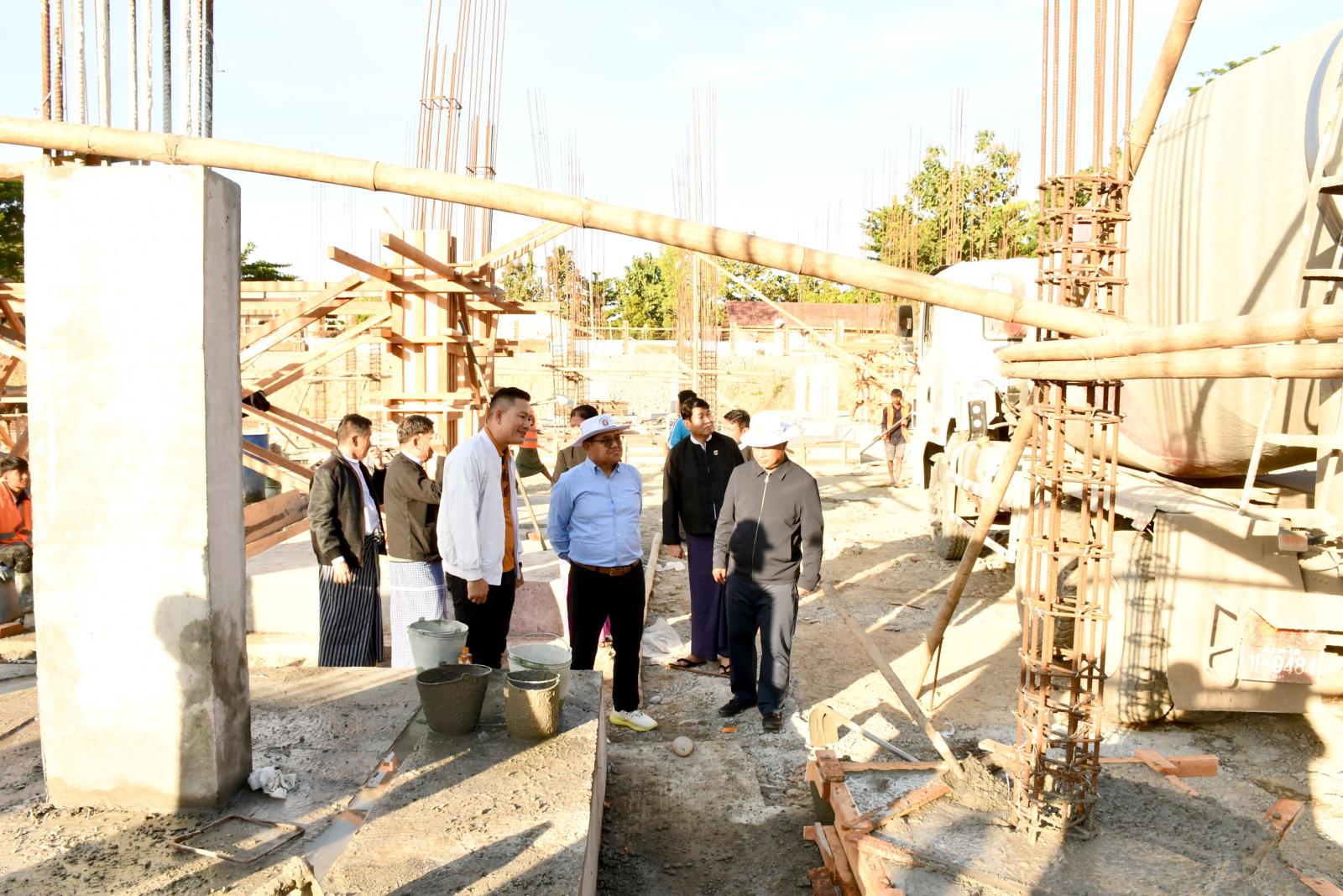 ယင်းနောက် ပြည်နယ်ဝန်ကြီးချုပ်နှင့် ပြည်နယ်လမ်းပန်းဆက်သွယ်ရေးဝန်ကြီးတို့သည် မြစ်ကြီးနားမြို့ မန်ခိန်ရပ်ကွက်အတွင်းရှိ ကွင်းအမှတ်- ၄ / ယောရင်ကွင်း၊ ဦးပိုင်အမှတ် ၃၅ /၂င ၊ ၃၅ /၂စ ၌ ကချင်ပြည်နယ်တရားလွှတ်တော်ရုံး အဆောက်အဦသစ် အလျား ၂၀၆ ပေ၊ အနံ ၁၅၃ ပေရှိ သံကူကွန်ကရစ် (၄) ထပ် အဆောက်အအုံ တည်ဆောက်ရေးလုပ်ငန်းခွင်သို့ သွားရောက်ပြီး ပြည်နယ် တရားလွှတ်တော်တရားသူကြီးချုပ် ဒေါ်အေးအေးမော်၊ တရားလွှတ်တော်တရားသူကြီးများ၊ တရားရေးဝန်ထမ်းများနှင့်အတူ အဆောက်အဦသစ်အား တာဝန်ယူဆောက်လုပ်သည့် G-3 ကုမ္ပဏီတာဝန်ရှိ သူနှင့်အတူ ၂၀၂၅-၂၀၂၆ ဘဏ္ဍာရေးနှစ်အတွင်း ဆောင်ရွက်ပြီးစီးရမည့် မြေသားပြုပြင်ခြင်းလုပ်ငန်း နှင့် အောက်ခြေဖောင်ဒေးရှင်းဆောင်ရွက်ခြင်းလုပ်ငန်းများ၊ ခြံစည်းရိုးအုတ်ကာရံခြင်းနှင့် Ground Tank တည်ဆောက်ခြင်းလုပ်ငန်းများနှင့် ဆက်စပ်လုပ်ငန်းများ ဆောင်ရွက်နေမှု အခြေအနေများကို ကွင်းဆင်းကြည့်ရှုစစ်ဆေးခဲ့ကြကာ လုပ်ငန်းများအရည်အသွေးပြည့်မီစွာဖြင့် အချိန်မီပြီးစီးအောင် ဆောင်ရွက်ရေးမှာကြားခဲ့ကြောင်း သိရသည်။