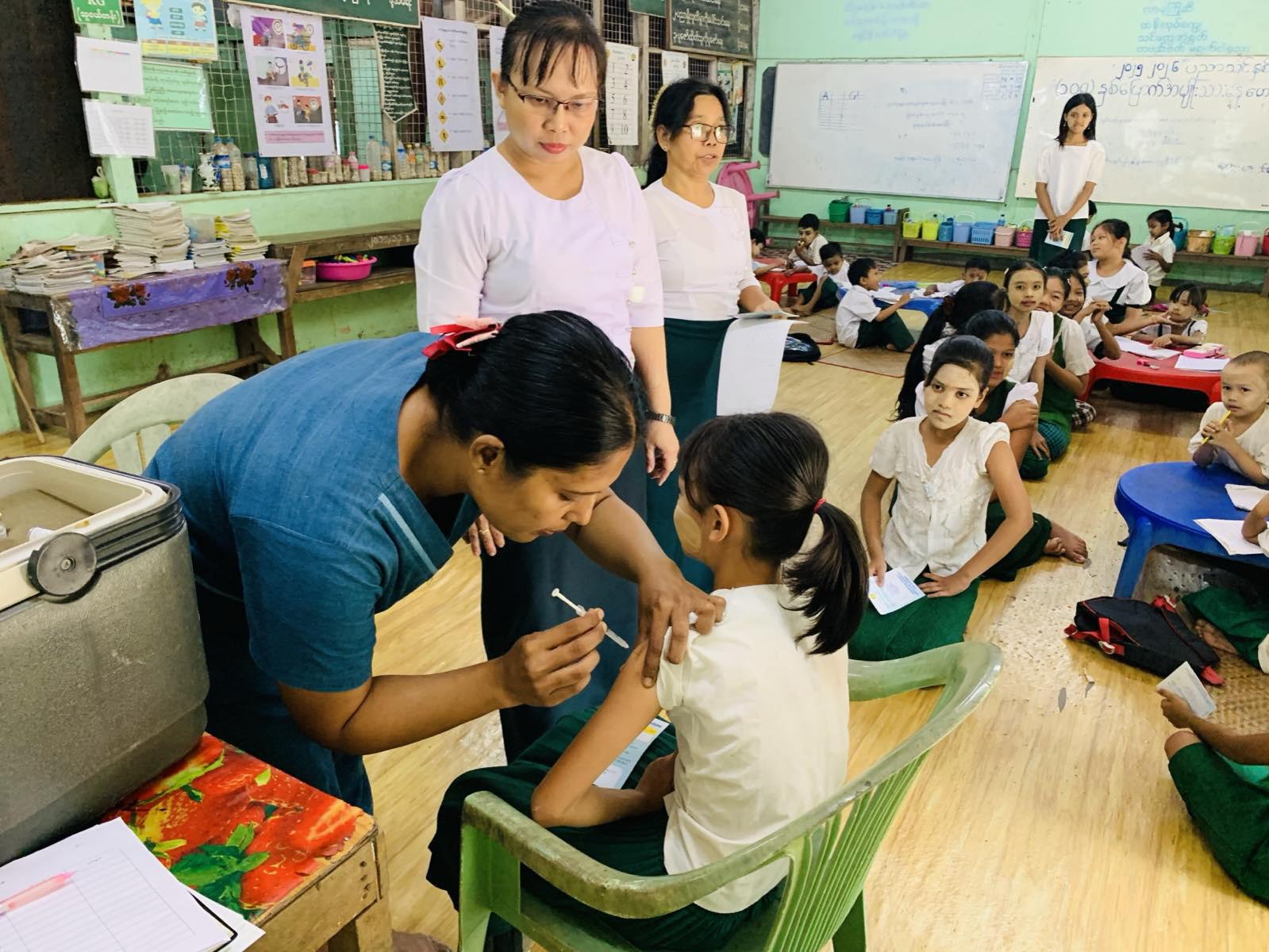 သန်လျင်ခရိုင် သန်လျင်မြို့နယ်ရှိ အခြေခံပညာကျောင်းများ၌ ကျောင်းသူများအား သားအိမ်ခေါင်းကင်ဆာရောဂါကာကွယ်ဆေးထိုးနှံခြင်းကို ယနေ့နံနက် (၁၀) နာရီအချိန်က အောင်မင်္ဂလာမူလတန်းကျောင်း၌ ဆောင်ရွက်ခဲ့ကြသည်။