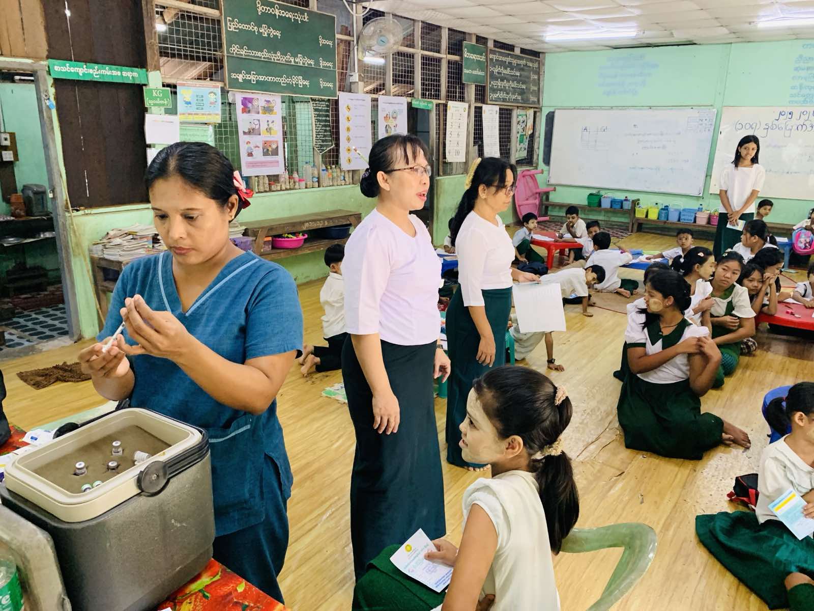 ထိုသို့ ဆောင်ရွက်ရာတွင် သန်လျင်မြို့နယ် ပြည်သူ့ကျန်းမာရေးဦးစီးဌာနမှ မြို့နယ်ပြည်သူ့ကျန်းမာရေးဦးစီးဌာနမှူး ဒေါက်တာစံလင်း၏ ကြီးကြပ်လမ်းညွှန်မှုဖြင့် ပြည်သူ့ကျန်းမာရေးဝန်ထမ်းများက အသက် (၉) နှစ်ပြည့်ပြီး (၁၃) နှစ်မကျော်သော ကျောင်းသူများအား သားအိမ်ခေါင်းကင်ဆာရောဂါကာကွယ်ဆေး (HPV) ထိုးနှံပေးခြင်းတို့အား ကျောင်းအခြေပြုကွင်းဆင်းထိုးနှံပေးခဲ့ကြောင်း သိရသည်။