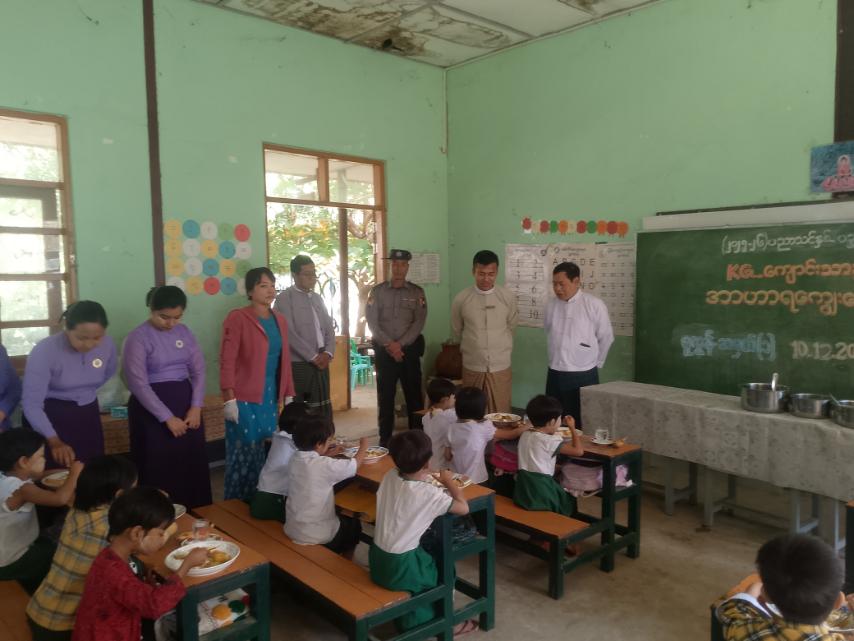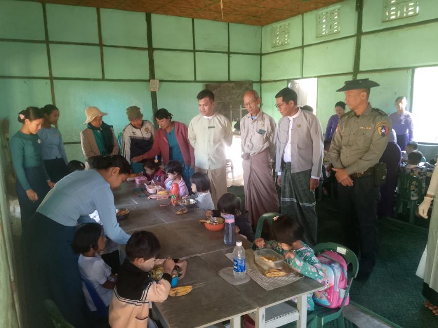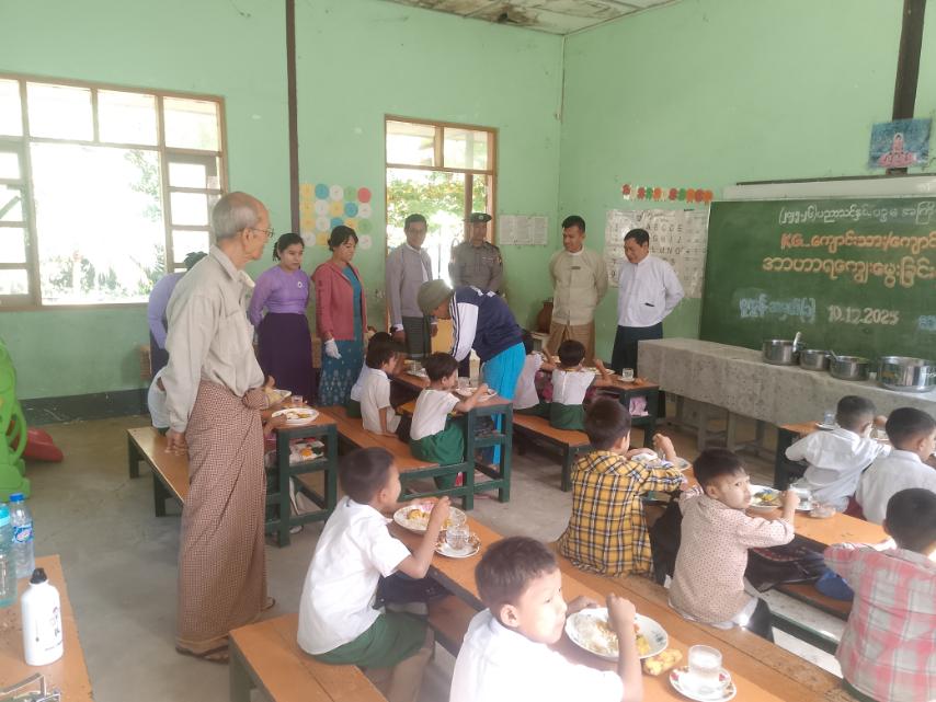အဆိုပါ အာဟာရချက်ပြုတ်ကျွေးမွေးခြင်း အစီအစဉ်ဆောင်ရွက်နေမှုအား မြို့နယ်စီမံခန့်ခွဲရေးနှင့်အုပ်ချုပ်ရေးကော်မတီဥက္ကဋ္ဌ ဦးကျော်ငြိမ်းထွန်းနှင့် အဖွဲ့ဝင်များ၊ မြို့နယ်ပြည်သူ့ကျန်းမာရေးဦးစီးဌာန ကျန်းမာရေးဝန်ထမ်းများ၊ မြို့နယ်အခြေခံပညာဦးစီးဌာနမှ မြို့နယ်ပညာရေးမှူး ဦးကြည်သင်း၊ မြို့နယ်အမျိုးသမီးရေးရာအဖွဲ့ဝင်များနှင့် မြို့နယ် မိခင်နှင့်ကလေးစောင့်ရှောက်ရေးအသင်းအဖွဲ့ဝင်များနှင့် တာဝန်ရှိသူများ သွားရောက်၍ ကြည့်ရှုအားပေးသည်။
