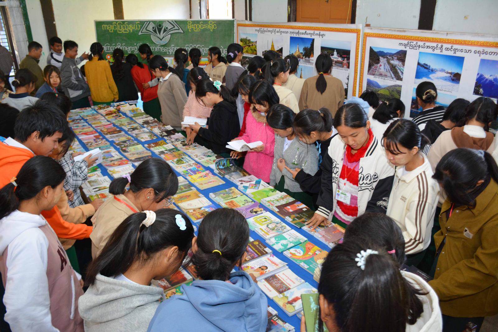 ကချင်ပြည်နယ်အစိုးရအဖွဲ့၏ ကြီးကြပ်မှုဖြင့် ပြန်ကြားရေးနှင့်ပြည်သူ့ဆက်ဆံရေးဦးစီးဌာနနှင့် အခြေခံပညာဦးစီးဌာနတို့ ပူးပေါင်းကျင်းပသည့် စာကြည့်တိုက်များဖွံ့ဖြိုးတိုးတက်ရေးနှင့် စာဖတ်ရှိန်မြှင့်တင်ရေးပွဲတော်ကို ယနေ့နံနက် (၉) နာရီက ကချင်ပြည်နယ် မိုးညှင်းခရိုင် မိုးညှင်းမြို့ အမှတ် (၁) အခြေခံပညာအထက်တန်းကျောင်း အောင်ဆန်းခန်းမ၌ စည်ကားသိုက်မြိုက်စွာ ကျင်းပသည်။