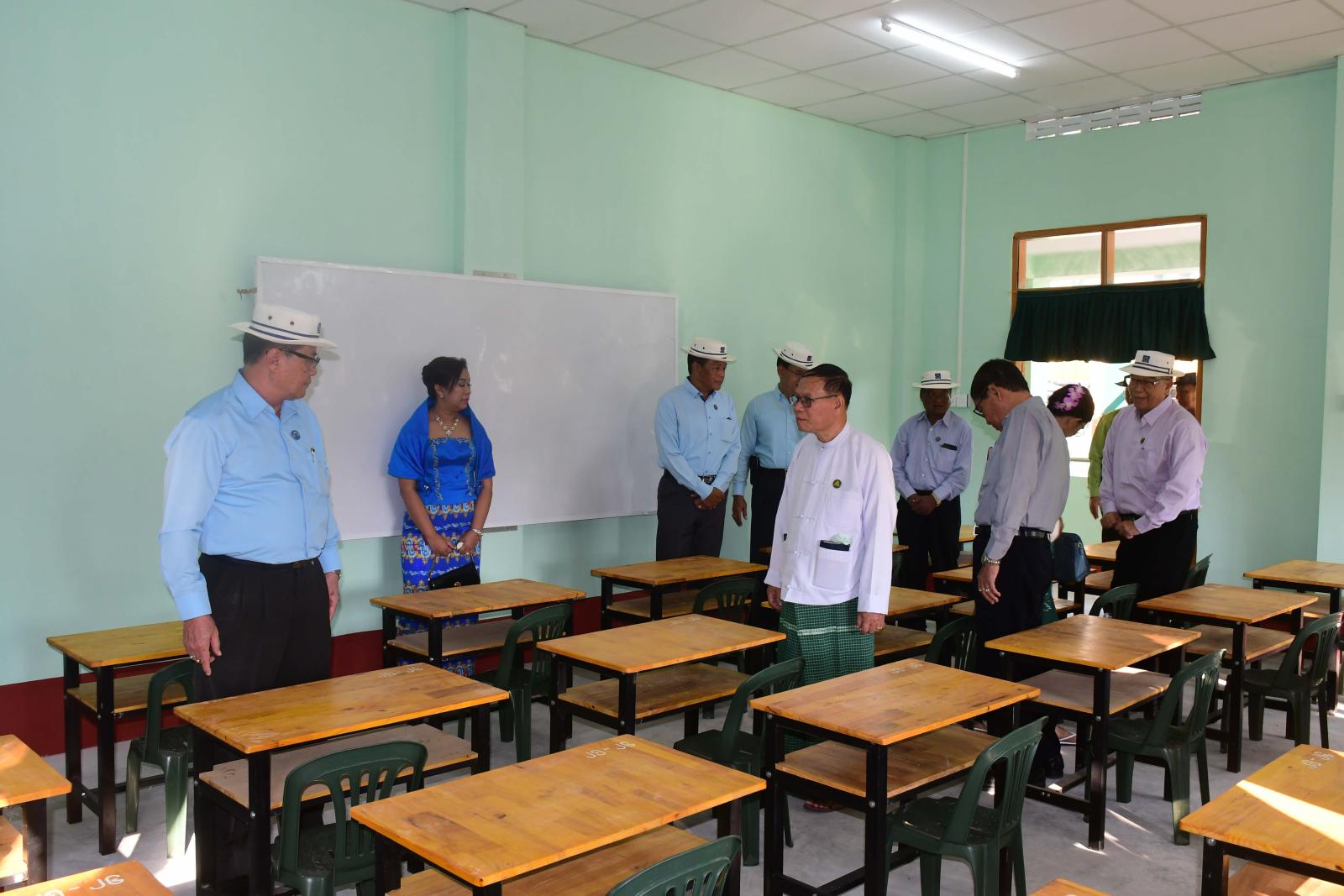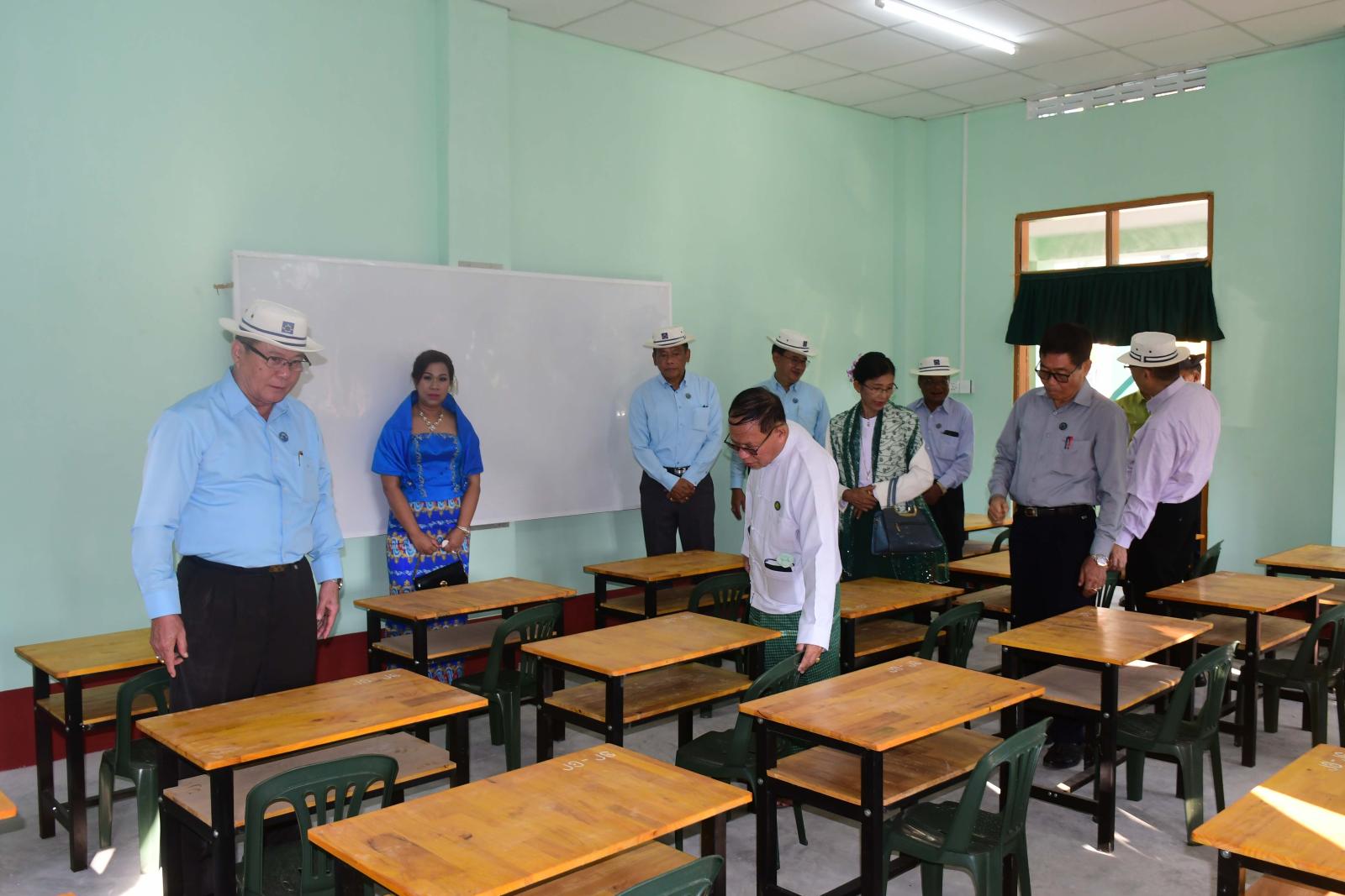 ယင်းနောက် ကျောင်းဆောင်သစ်လွှဲပြောင်းပေးအပ်ပွဲအခမ်းအနားကို အဆိုပါကျောင်းရှေ့၌ ဆက်လက် ကျင်းပရာ ပြည်နယ်ဝန်ကြီးချုပ်က ကျောင်းကော်မတီများ၊ အကျိုးတော်ဆောင်များ၊ မိဘများအနေဖြင့် မိမိတို့၏ သားသမီးပညာသင်ကြားခွင့်ကို လမ်းကြောင်းအမှန်သို့ရောက်အောင် တိုက်တွန်းလမ်းညွှန်ပေးကြရန်နှင့် ဆရာ၊ ဆရာမများအနေဖြင့်လည်း တပည့်များအပေါ် ရင်ဝယ်သား၊ သမီးကဲ့သို့ စိတ်ထား မွန်မြတ်စွာဖြင့် စေတနာအရင်းခံထားပြီး ကျွမ်းကျင်တတ်မြောက်အောင် သင်ကြားပေးကြစေလိုကြောင်း တိုက်တွန်းပြောကြားသည်။