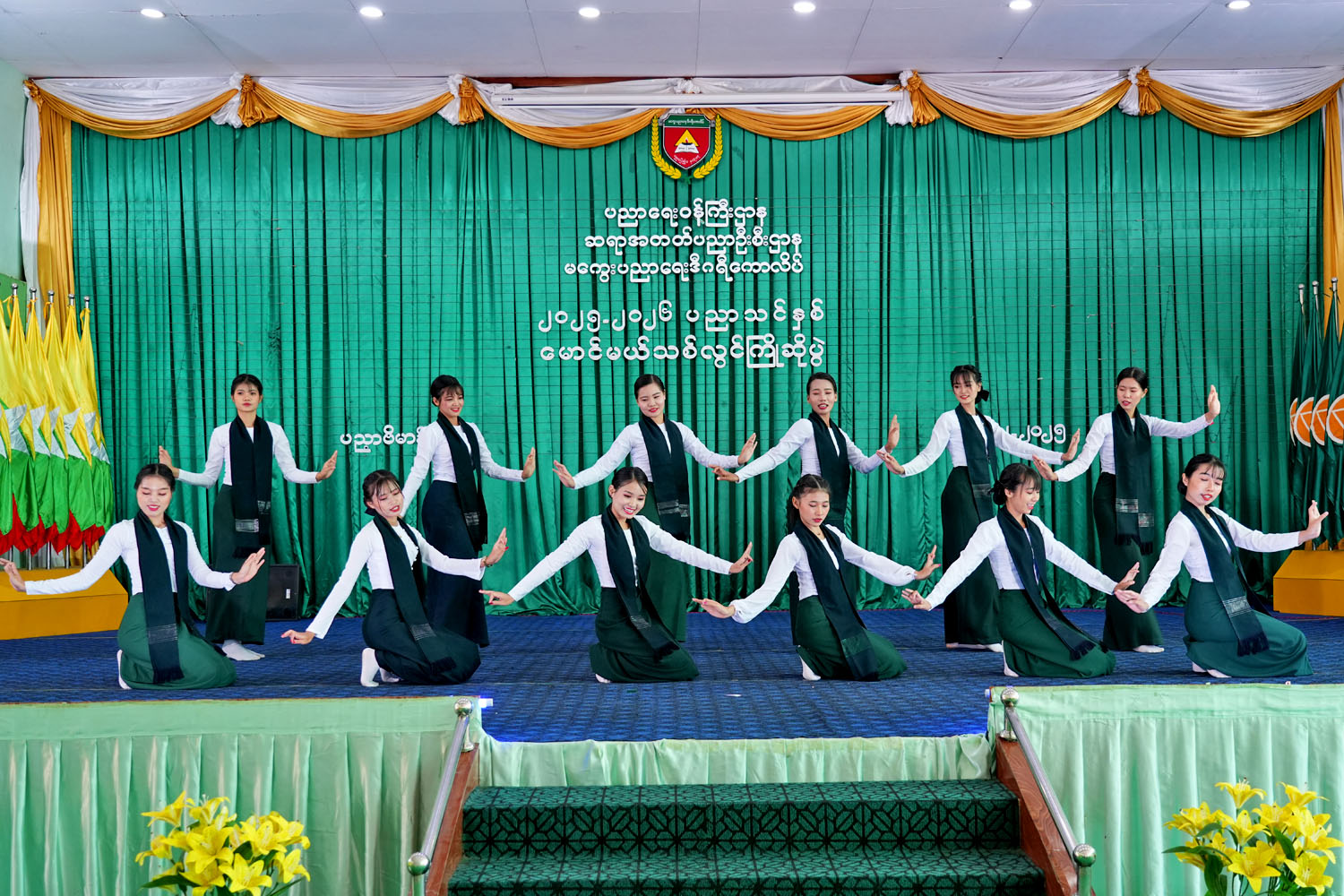 ဦးစွာ သင်တန်းသား၊ သင်တန်းသူများက ပညာ့ပန်းဝေ ဖန်ခါးမြေ တေးသီချင်းသီဆို၍ အခမ်းအနားကို ဖွင့်လှစ်ခဲ့ပြီး၊ တိုင်းဒေသကြီးဝန်ကြီးချုပ် ဦးတင့်လွင်က အမှာစကားပြောကြားရာတွင် လက်ရှိ ကျွန်ုပ်တို့နိုင်ငံသည် ဒီမိုကရေစီနှင့်ဖက်ဒရယ်စနစ်ကို အခြေခံသော ပြည်ထောင်စု နိုင်ငံတော်တည်ဆောက်လျက်ရှိရာမှာ နိုင်ငံသားတိုင်း ပညာရည်ပြည့်ဝရန် အရေးကြီးသကဲ့သို့ ခေတ်မီဖွံ့ဖြိုးတိုးတက်သောနိုင်ငံအဖြစ် နိုင်ငံတကာနှင့် ရင်ပေါင်တန်းနိုင်ရန်အတွက်လည်း ပညာရေးကိုမြှင့်တင်အားပေးလျက်ရှိပါကြောင်း၊ ၂၀၂၅-၂၀၂၆ ပညာသင်နှစ် မကွေးပညာရေးဒီဂရီကောလိပ်မှ ဖွင့်လှစ်တဲ့ ပထမနှစ်အတန်းကို စတင်တက်ရောက်သည့် ကျောင်းသား၊ကျောင်းသူများကို ကြိုဆိုပါကြောင်း ယခု မကွေးပညာရေးဒီဂရီ ကောလိပ်မှာ G-12 အောင်မြင်ပြီး ပထမနှစ်သို့ လာတက်ရောက်သည်မှာ ဒုတိယအသုတ် ဖြစ်ပြီး၊ ယခင်နှစ် ပထမအသုတ်မှာ ကျောင်းသား၊ကျောင်းသူ (၁၉၈)ဦး တက်ရောက်ခဲ့ပြီး ယခုနှစ် G-12 အောင်မြင်ပြီးသူ (၁၇၈)ဦးနှင့် ဒုတိယနှစ်မှ စတုတ္ထနှစ်အထိ စုစုပေါင်း (၁၁၃၀)ဦး တက်ရောက်ပညာသင်ကြားနေသည်ဟုသိရကြောင်း၊ နိုင်ငံတစ်ဝန်းလုံးရှိ ပညာရေးဒီဂရီကောလိပ်(၂၅)ခုမှာ အခြေခံပညာမူလတန်းပြနှင့် အလယ်တန်းပြဆရာ၊ ဆရာမလောင်းများကိုတစ်ပြိုင်နက် လေ့ကျင့်သင်ကြားပေးလျက်ရှိပါရာမှာ ဆရာအတတ်ပညာများကို(၄)နှစ်တာ တက်ရောက်လေ့ကျင့်သင်ကြားရမှာဖြစ်ပြီး အောင်မြင်သောအခါ B.A(Education)နှင့် B.Sc(Education)ဘွဲ့ကိုရရှိပြီး အလယ်တန်းပြရာထူးဖြင့် အလုပ်ခန့်အပ်မှာဖြစ်ပါကြောင်း၊ ထိုမှတစ်ဆင့်(B.Ed) မဟာပညာရေးဘွဲ့( M.Ed) ပါရဂူဘွဲ့ (Ph.D)အထိ ရယူနိုင်မှာဖြစ်တဲ့အတွက် မိမိတို့ကြိုးစားရင် ကြိုးစားသလောက် သင်ယူမှုအခွင့်အလမ်းများကိုရှိမှာဖြစ်ပါကြောင်း၊ ယနေ့ခေတ်သည် ပညာခေတ်ဖြစ်သည်နှင့်အညီ သင်ရိုးညွှန်းတမ်းများကိုလည်း နိုင်ငံတကာအဆင့်မီ သင်ရိုးညွှန်းတမ်းများဖြစ်လာစေရေးအတွက် နိုင်ငံတော်ကရေးဆွဲပြုစုပြီး သင်ကြားပို့ချလျက် ရှိပါတယ်။ မူလတန်းနှင့် အလယ်တန်းကျောင်း စာသင်ခန်းများတွင် ထိရောက်စွာ သင်ကြားနိုင်ရန်လိုအပ်သောတက်ကျွမ်းမှုများ၊ တတ်မြောက်သွားစေရန် စီစဉ်ရေးဆွဲထားကြောင်းသိရှိရပြီး၊ ဆရာများအတွက် တက်ကျွမ်းမှု စံသတ်မှက်ချက် အညွှန်းဘောင်(TCSF) အပေါ်အခြေခံ၍ ရေးဆွဲထားခြင်းဖြစ်ပါကြောင်း၊ ယနေ့ကာလဟာ နိုင်ငံတော်ရဲ့အနာဂတ်ကိုမျှော်မှန်းပြီး တိုင်းကျိုးပြည်ဆောင်နိုင်ငံသားကောင်း၊ သမီးမွန်များ ပြုစုပျိုးထောင်မွေးထုတ်ပေးနိုင်စေရန် ပညာရေးကဏ္ဍကတာဝန်ယူပြီး အကောင်အထည်ဖော်ဆောင်ရွက်နေတဲ့အချိန် ကာလဖြစ်တဲ့အတွက် ဆရာ၊ ဆရာမများရဲ့ အားထုတ်ကြိုးပမ်းမှု မွန်မြတ်သောစိတ်စေတနာနဲ့ ဆရာ့အရည်အသွေးပြည့်၀ မြင့်မားမှုတို့ဟာ အ