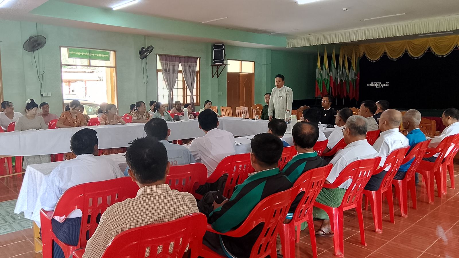 ရှေးဦးစွာ ပေါင်မြို့နယ် စီမံခန့်ခွဲရေးနှင့်အုပ်ချုပ်ရေးကော်မတီဥက္ကဋ္ဌ ဦးထင်လင်းအောင် ကပေါင်မြို့အတွင်းသာမက ရှိခိုကိုးရာမဲ့နေသည့် သက်ကြီးရွယ်အိုများအနေဖြင့် နားခိုရာ နေရာတစ်ခုရရှိစေရန်ရည်ရွယ်၍ ဘိုးဘွားရိပ်သာကို တည်ဆောက်သွားမည်ဖြစ်ကြောင်း အမှာစကားပြောကြားသည်။ ဆက်လက်၍ မြို့မိမြို့ဖ ဦးဘုန်းမြင့်က ဘိုးဘွားရိပ်သာ ဆောက်လုပ်ရာတွင် ကြုံတွေ့ရမည့်အခက်အခဲများ ရင်ဆိုင်ရမည့်ပြဿနာများကို မြို့သူ မြို့သားများအပါအဝင် ရပ်ကွက်/ကျေးရွာ အုပ်ချုပ်ရေးမှုးနှင့်ကော်မတီဝင်များက အင်တိုက်အားတိုက်ပေါင်းစပ်ညှိနှိုင်းဆောင်ရွက်သွားကြရန် လိုအပ်ပါကြောင်း ဆွေးနွေးသည်။