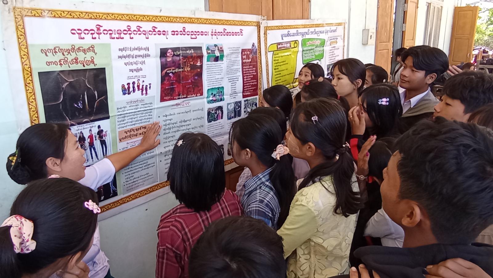 ထို့နောက် ကျောင်းသား/ကျောင်းသူများက ပြန်ကြားရေးနှင့်ပြည်သူ့ဆက်ဆံရေးဦးစီးဌာနမှ ခင်းကျင်းပြသထားသော လူကုန်ကူးမှုအန္တရာယ်တားဆီးကာကွယ်ရေး အသိပညာပေးနံရံကပ်စာစောင်နှင့် စာအုပ်စာစောင်များအား စိတ်ပါဝင်စားစွာကြည့်ရှုလေ့လာခဲ့ကြောင်း သိရှိရသည်။