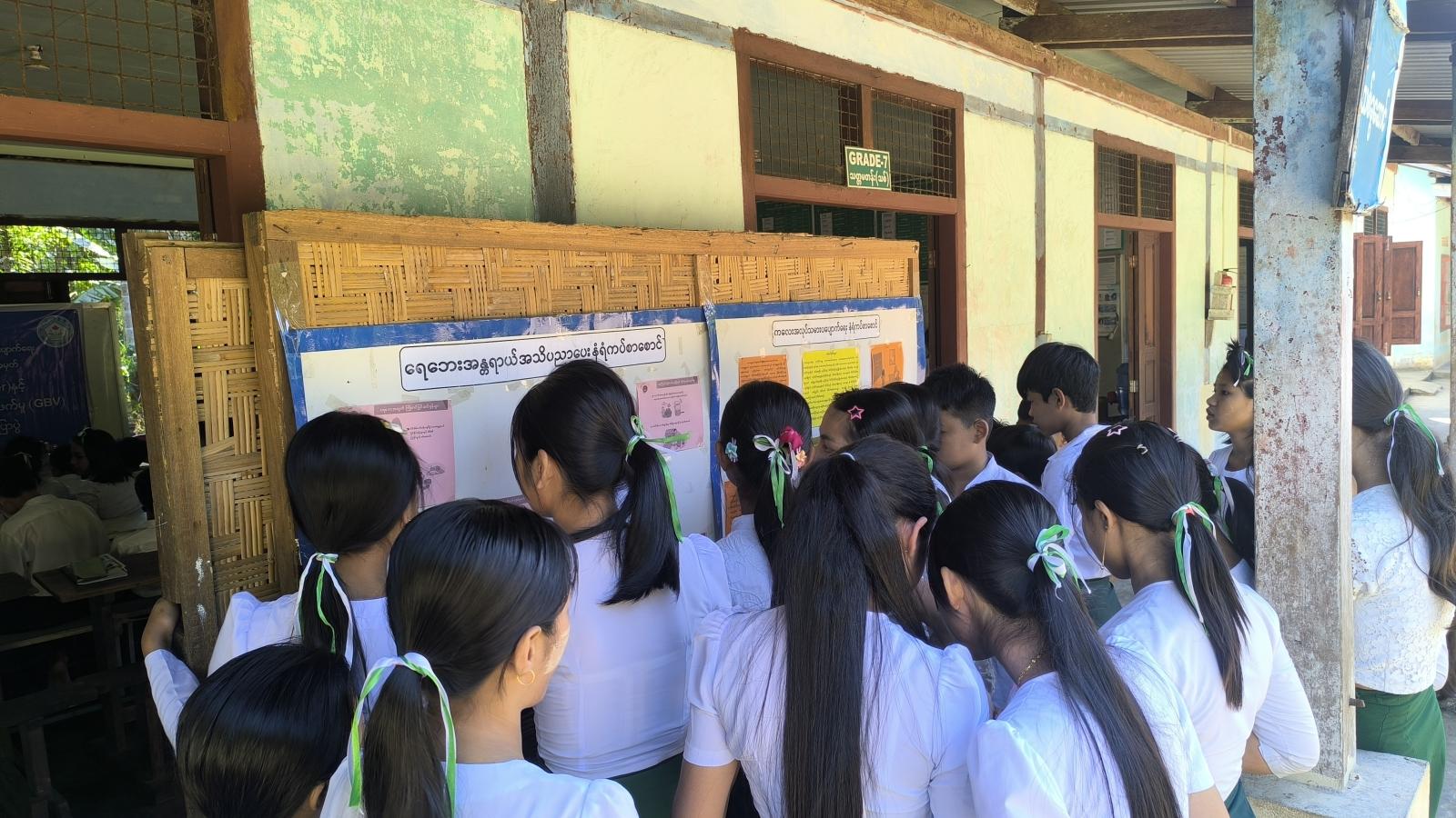 ထို့နောက် မြို့နယ်ပြန်/ဆက်ဝန်ထမ်းများက ရေဘေးအန္တရာယ်၊ အပူဒဏ်အန္တရာယ်နှင့် ကလေးအလုပ်သမား ပပျောက်ရေး အသိပညာပေးနံရံကပ်စာစောင်များကို ခင်းကျင်းပြသခဲ့ရာ ကျောင်းသား၊ ကျောင်းသူများက စိတ်ပါဝင်စားစွာ ဖတ်ရှုလေ့လာခဲ့ကြကြောင်း သိရသည်။