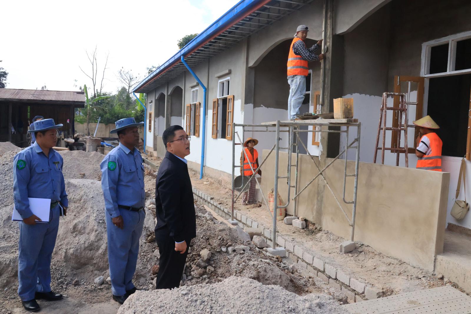 ထို့နောက် ပြည်နယ်ဝန်ကြီးချုပ်နှင့် တာဝန်ရှိသူများသည် နောင်ယား(က)ရပ်ကွက်ရှိ ပြည်နယ် ဖွံ့ဖြိုးမှုကြီးကြပ်ရေးရုံး၊ ဝန်ထမ်းအိမ်ရာဝင်းအတွင်း ဆောင်ရွက်နေသည့် သံကူကွန်ကရစ် ၆ ခန်းတွဲ ၁ ထပ် ဝန်ထမ်းအိမ်ရာနှင့် ရေစင်တည်ဆောက်နေမှုအားလည်းကောင်း၊ အရာရှိနေအိမ် အကြီးစားပြုပြင် ခြင်း လုပ်ငန်းဆောင်ရွက်နေမှုကို ကြည့်ရှုစစ်ဆေးပြီးလုပ်ငန်းများ သတ်မှတ်အရည်အသွေး ပြည့်မီစွာဖြင့် အချိန်မီပြီးစီးအောင် ဆောင်ရွက်ရန် တာဝန်ရှိသူများအား မှာကြားသည်။