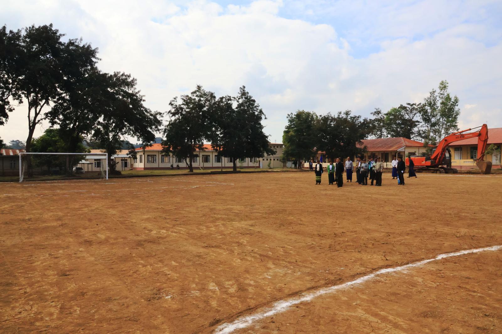 ဆက်လက်၍ ပြည်နယ်ဝန်ကြီးချုပ် တာဝန်ရှိသူများသည် နမ့်ကွတ်ရပ်ကွက်၊ အခြေခံပညာ အထက်တန်းကျောင်း(ခွဲ)သို့ ရောက်ရှိကာ ကျောင်းဝင်းအတွင်း ကျောင်းသား ကျောင်းသူများ အားကစားလှုပ်ရှားမှုဆောင်ရွက်နိုင်ရန် ပြည်နယ်အစိုးရအဖွဲ့ အစီအစဉ်ဖြင့် ဘောလုံးကွင်း ဖောက်လုပ် ပေးနေမှုကို ကြည့်ရှုစစ်ဆေးသည်။ ပြည်နယ်ဝန်ကြီးချုပ်က ကျောင်းဘောလုံးကွင်းအား သတ်မှတ်ထားသည့် ဘောလုံးကွင်းအင်္ဂါရပ်များနှင့် ပြည့်စုံအောင် ဆောင်ရွက်ရန်၊ ပြေးခုန်ပစ်အားကစားပြိုင်ပွဲများ ကျင်းပဆောင်ရွက်နိုင်ရန်အတွက် ပြေးလမ်းများ ထည့်သွင်းဆောင်ရွက်နိုင်ရေး ဆောင်ရွက်သွားရန်၊ ကျောင်းဝင်းအတွင်း အရိပ်ရပင်နှင့် ပန်းအလှပင်များ စိုက်ပျိုးသွားရန်နှင့် ကျောင်းနှင့် ကျောင်းပတ်ဝန်းကျင် သန့်ရှင်းသာယာမှုရှိစေရေး စဉ်ဆက်မပြတ် ဆောင်ရွက်သွားရန် တာဝန်ရှိသူ များအား မှာကြားသည်။