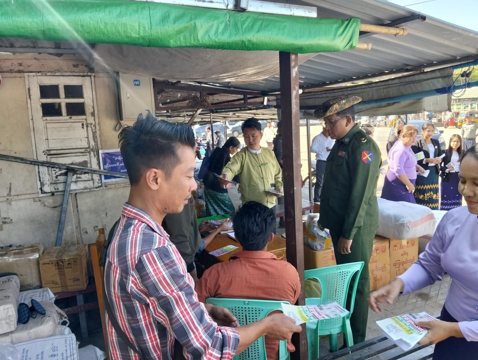 အဆိုပါ လက်ကမ်းစာစောင်တွင် ရွေးကောက်ပွဲမှသည် ပိုမိုကောင်းမွန်သော အနာဂတ်ဆီသို့၊ ဒီမိုကရေစီကိုပြန်လည်ဖော်ဆောင်ဖို့အတွက် ရွေးကောက်ပွဲမှလွဲ၍ အခြားနည်းမရှိပါ၊ ပြည်သူများ လိုလားသည့် ဒီမိုကရေစီ၊နိုင်ငံတော်ကို ရွေးကောက်ပွဲဖြင့်သာ ဖော်ဆောင်နိုင်ပါသည်၊ ဒီမိုကရေစီ ခိုင်မြဲဖို့ မဲရုံသွားပြီးမဲပေးကြပါစို့၊ နိုင်ငံဖွံ့ဖြိုးတိုးတက်ဖို့ ဦးဆောင်နိုင်သူရွေးချယ်ကြပါစို့ ဟူသော အချက်များပါရှိပြီး ပျဉ်းမနားခရိုင်စီမံခန့်ခွဲရေးနှင့်အုပ်ချုပ်ရေးကော်မတီအဖွဲ့ဝင်များ၊ ဇမ္ဗူသီရိမြို့နယ်စီမံခန့်ခွဲရေးနှင့်အုပ်ချုပ်ရေးကော်မတီဥက္ကဋ္ဌ ဦးဇေနော်ဝင်းနှင့် အဖွဲ့ဝင်(၁) ဗိုလ်မှူးပြည့်ဖြိုးအောင်၊ မြို့နယ်အထွေထွေအုပ်ချုပ်ရေးဦးစီးဌာနမှဝန်ထမ်းများ၊ မြန်မာနိုင်ငံရဲတပ်ဖွဲ့၊ မြို့နယ်ရွေးကောက်ပွဲကော်မရှင်အဖွဲ့ခွဲအဖွဲ့ဝင်များ၊ ဌာနဆိုင်ရာဝန်ထမ်းများ၊ NGO အဖွဲ့အစည်းများ စုပေါင်း၍ ပြည်သူများအား "ဒို့အတူတူမဲပေးကြမယ်" အသိပညာပေးလက်ကမ်းစာစောင်များ အခမဲ့ဖြန့်ဝေပေးခဲ့ကြောင်း သိရှိရသည်။