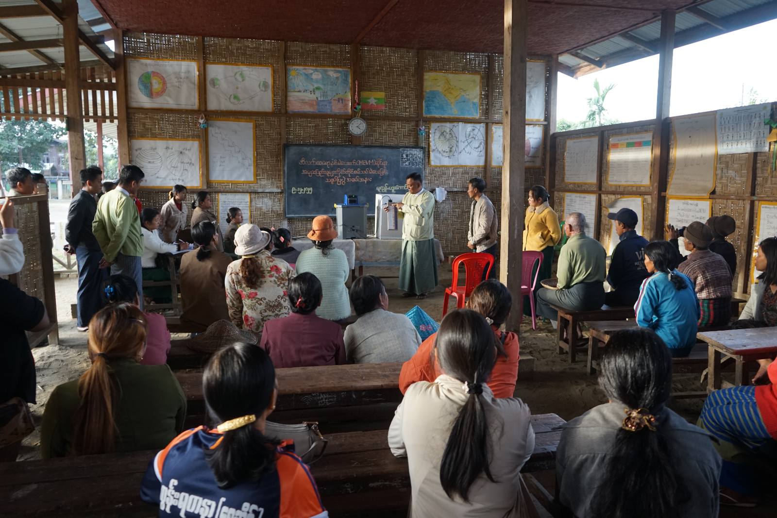 ရှေးဦးစွာ မြို့နယ်စီမံခန့်ခွဲရေးနှင့် အုပ်ချုပ်ရေးကော်မတီဥက္ကဋ္ဌ၊ မြို့နယ်အုပ်ချုပ်ရေးမှူး ဦးအောင်စိုးက မြန်မာအီလက်ထရောနစ်(MEVM)ဖြင့် လက်တွေ့သရုပ်ပြစမ်းသပ်မဲပေးနည်း အသိပညာပေးခြင်းနှင့် လက်တွေ့သရုပ်ပြသခြင်းဆောင်ရွက်ရသည့် ရည်ရွယ်ချက်များအား ရှင်းလင်းပြောကြားခဲ့သည်။ ဆက်လက်၍ ပြည်သူများ ကိုယ်တိုင်လက်တွေ့ စမ်းသပ်မဲပေးခဲ့ကြကာ အဆိုပါ မြန်မာအီလက်ထရောနစ်မဲပေးစက်(MEVM)ဖြင့် ဆန္ဒမဲပေးနည်း အသိပညာပေးခြင်းနှင့် လက်တွေ့သရုပ်ပြသခြင်းကိုဌာနဆိုင်ရာ တာဝန်ရှိသူများနှင့် မြို့နယ်ရွေးကောက်ပွဲကော်မရှင် ဦးစီးအရာရှိနှင့် ဝန်ထမ်းများက ကျေးရွာအုပ်စုအလိုက် တာဝန်ခွဲဝေ၍ စနစ်တကျ ရှင်းလင်းသရုပ်ပြဆောင်ရွက်ခဲ့ကြကြောင်း သိရသည်။