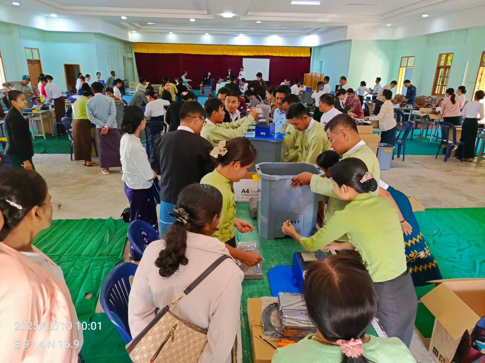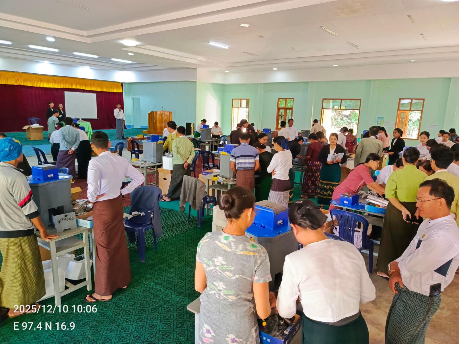 မွန်ပြည်နယ်၊ သထုံခရိုင်ရွေးကောက်ပွဲကော်မရှင်အဖွဲ့ခွဲနှင့် ခရိုင်အဆင့် နည်းပညာအထောက်အကူပြုအဖွဲ့တို့၏ ကြီးကြပ်မှုဖြင့် ပါတီစုံဒီမိုကရေစီအထွေထွေရွေးကောက်ပွဲ အပိုင်း(၁)၌ ပါဝင်သည့် သထုံမြို့နယ်နှင့် ကျိုက်ထိုမြို့နယ်တို့၏ MVEM မဲပေးစက်များ Installation ပြုလုပ်ခြင်း ဖွင့်ပွဲအခမ်းအနားကို ယနေ့နံနက်က သထုံမြို့၊ လိပ်အင်းရပ်ကွက်ရှိ မြို့နယ်စုပေါင်းရုံးခန်းမ၌ ကျင်းပပြုလုပ်သည်။