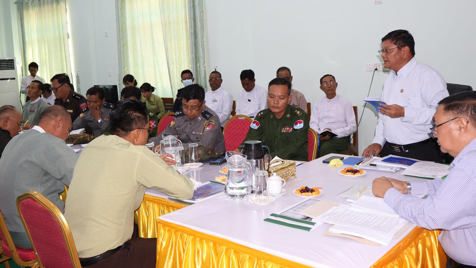 ဆွေးနွေးရာ၌ ပြည်ထောင်စုရွေးကောက်ပွဲကော်မရှင်အဖွဲ့ဝင် ဦးသန်းထွတ်သိန်းက ဘုတ်ပြင်းခရိုင်အတွင်း ပါတီစုံဒီမိုကရေစီအထွေထွေရွေးကောက်ပွဲ ကျင်းပဆောင်ရွက်နိုင်ရေးအတွက် သက်ဆိုင်ရာတာဝန်ရှိသူများအနေဖြင့် ပူးပေါင်းဆောင်ရွက်ရန်လိုပါကြောင်း၊ ပြည်သူများ မဲပေးရာတွင် အခက်အခဲမရှိ မဲပေးနိုင်ရန် ဆောင်ရွက်ထားရမှာဖြစ်ပါကြောင်း၊ ရပ်ကွက်/ကျေးရွာများရှိ သတ်မှတ်ထားသည့်မဲရုံများသို့ မဲပေးစက်များ သယ်ယူပို့ဆောင်ရေးကိစ္စရပ်များ၊ မဲပေးစက်များအသင့်ဖြစ်နိုင်ရေး၊ မဲပေးစက်ကိုင်တွယ်အသုံးပြုမည့်သူများ အသင့်ဖြစ်စေရေး၊ လုံခြုံရေးကောင်းမွန်ရေးနှင့် ရွေးကောက်ပွဲအောင်မြင်စွာ ကျင်းပနိုင်ရေးအတွက် ဝိုင်းဝန်းပူးပေါင်း ဆောင်ရွက်ပေးကြရန် လိုအပ်ကြောင်းပြောကြားသည်။