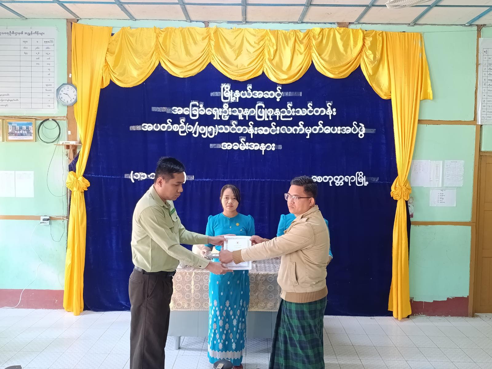 ထို့နောက် သင်တန်းသားများအား သင်တန်းဆင်းလက်မှတ်များပေးအပ်၍ သင်တန်းဆင်းပွဲသို့ မြို့နယ်စီမံအုပ်ချုပ်ရေးနှင့်ကော်မတီအဖွဲ့ဝင်များ၊ မြို့နယ်ကြက်ခြေနီသူနာတပ်ဖွဲ့မှ တာဝန်ရှိသူများ၊ သင်တန်းသား/ သင်တန်းသူများ တက်ရောက်ခဲ့ကြောင်း သိရသည်။