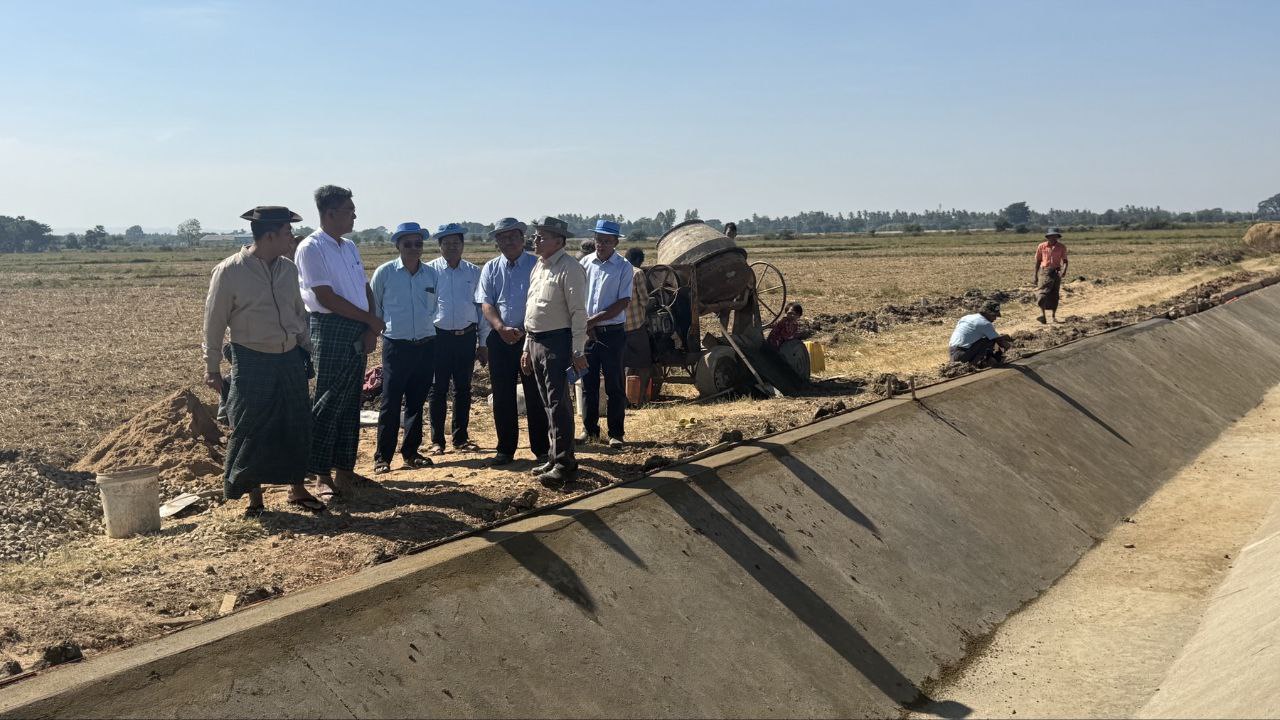ထို့နောက် နေပြည်တော်ကောင်စီဝင် ဦးမြင့်စိုးသည် တာဝန်ရှိသူများနှင့်အတူ ငလျင်ဒဏ်ကြောင့် ပျက်စီးခဲ့သည့် သဲကောကြီးကျေးရွာအနီးရှိ မဒန်းရေသောက်စနစ်၊ လက်တံခွဲ(၅)၊ ရေပေးမြောင်း၊ အရှည် ပေ ၃၈၀ ပြုပြင်နေမှုအား ကြည့်ရှုစစ်ဆေးရာ တာဝန်ရှိသူများက ဆောင်ရွက်ပြီးစီးမှုများကို ရှင်းလင်းတင်ပြသည်။ အဆိုပါ ရေပေးမြောင်းမှ သဲကောကြီးကျေးရွာနှင့် ကူသပိတ်ကျေးရွာရှိ လယ်မြေများအား အကျိုးပြုနိုင်မည်ဖြစ်သည်။ နေပြည်တော်ကောင်စီဝင်နှင့်အဖွဲ့သည် ဆက်လက်၍ ပိတောက်ချောင်ကျေးရွာအုပ်စု၊ ကွမ်းခြံကျေးရွာအနီးရှိ ပေါင်းလောင်းလက်ယာမြောင်းမကြီး၊ လက်တံမြောင်း(၅)၊ အရှည်ပေ ၂၀၀ ပြုပြင်နေမှုအား ကြည့်ရှုစစ်ဆေးသည်။ အဆိုပါ လက်တံမြောင်းပြုပြင်ပြီးပါက ကွမ်းခြံနှင့် ပိတောက်ချောင်ကျေးရွာများမှ လယ်ဧက ၅၀၀ ဧကအား အကျိုးပြု ရေပေးဝေနိုင်မည်ဖြစ်ကြောင်း သိရသည်။