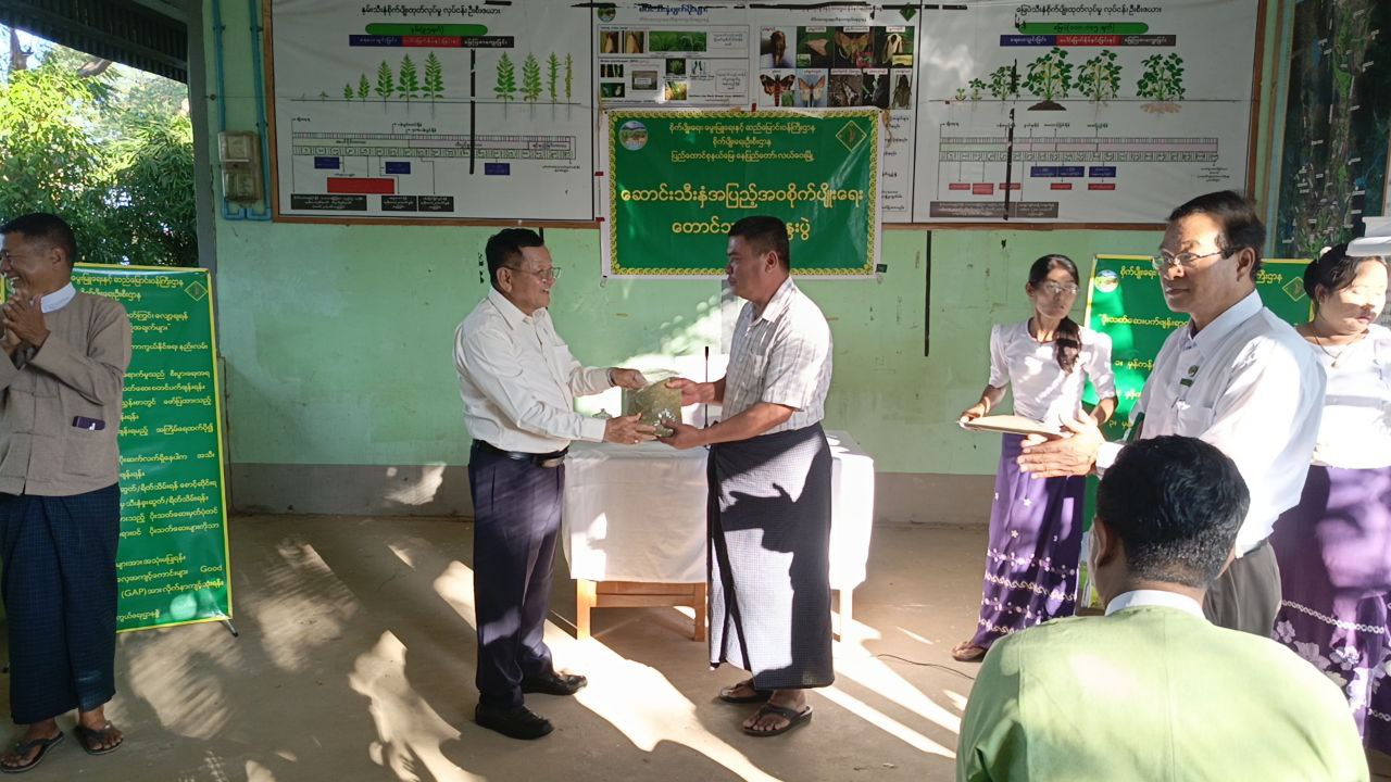 ဆက်လက်၍ နေပြည်တော်ကောင်စီဝင် ဦးမြင့်စိုးနှင့် တာဝန်ရှိသူများက တောင်သူများအား ပဲတီစိမ်းမျိုးစေ့များ ပေးအပ်ခဲ့သည်။