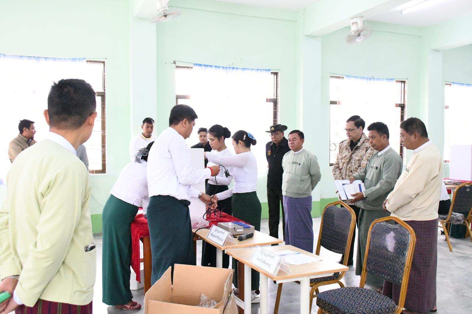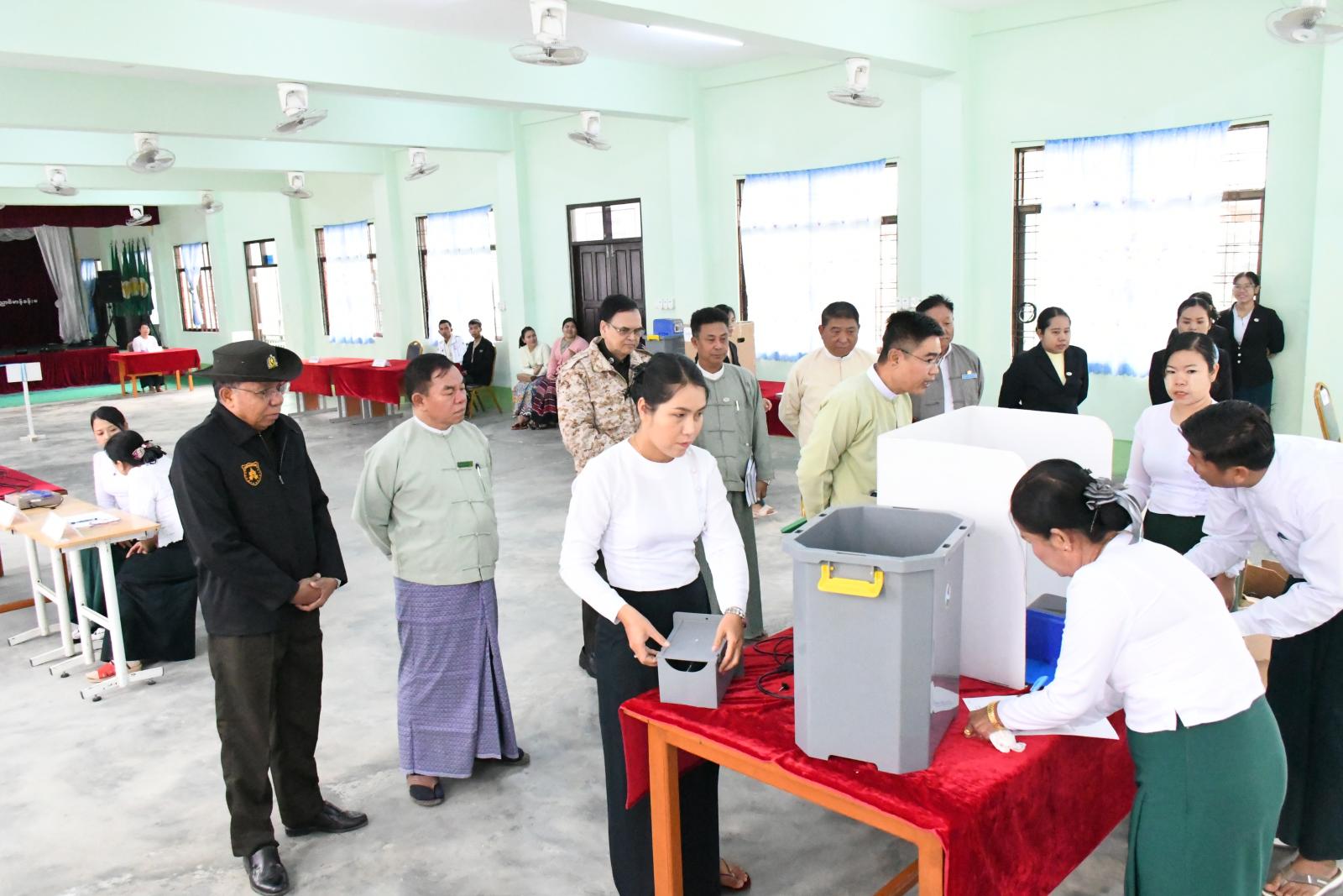ထိုသို့ ဇာတ်တိုက်လေ့ကျင့်ရာတွင် ပြည်သူ့လွှတ်တော်၊ အမျိုးသားလွှတ်တော်၊ တိုင်းဒေသကြီး/ ပြည်နယ်လွှတ်တော် (တိုင်းရင်းသားလူမျိုးကိုယ်စားလှယ်များအပါအဝင်)များအတွက် အီလက်ထရောနစ် မဲပေးစက်အသုံးပြုသည့် မဲရုံနေရာချထားမှုပုံစံဖြင့် ဆောင်ရွက်စဉ် မဲပေးစက်အစိတ်အပိုင်း တစ်စုံတစ်ရာချို့ယွင်းခြင်းဖြစ်ပေါ်ပါက မဲရုံမှူးနှင့် မဲရုံအဖွဲ့ဝင်များမှ အီလက်ထရောနစ်မဲပေးစက်(MEVM) အရန်စက်ဖြင့် လဲလှယ်မဲပေးခြင်းလုပ်ငန်းစဉ်များ ဇာတ်တိုက် လေ့ကျင့်ဆောင်ရွက်နေမှုအား ပြည်နယ်အစိုးရအုပ်ချုပ်ရေးအဖွဲ့ခွဲ(ရှမ်းအရှေ့) အဖွဲ့ဝင်-၄ ဦးအောင်မြတ်သာ၊ ကျိုင်းတုံခရိုင်စီမံခန့်ခွဲရေးနှင့် အုပ်ချုပ်ရေးကော်မတီဥက္ကဋ္ဌ ဦးနိုးဝေ၊ မြို့နယ်ဥက္ကဋ္ဌ ဦးစောမင်းသူနှင့် အဖွဲ့ဝင်များ၊ ရှမ်းပြည်နယ်(အရှေ့ပိုင်း) ရွေးကောက်ပွဲကော်မရှင်အဖွဲ့ခွဲရုံးမှ လက်ထောက်ညွှန်ကြားရေးမှူး ဦးကျော်မိုး၊ ကျိုင်းတုံခရိုင်နှင့် မြို့နယ်ရွေးကောက်ပွဲ ကော်မရှင်အဖွဲ့ခွဲရုံးများမှ အရာထမ်း၊ အမှုထမ်းများ၊ ပြည်နယ်၊ ခရိုင်၊ မြို့နယ်ရွေးကောက်ပွဲကော်မရှင်အဖွဲ့ခွဲများမှ ဥက္ကဋ္ဌနှင့် အဖွဲ့ဝင်များက ကြည့်ရှုအားပေးခဲ့ကြောင်း သိရသည်။