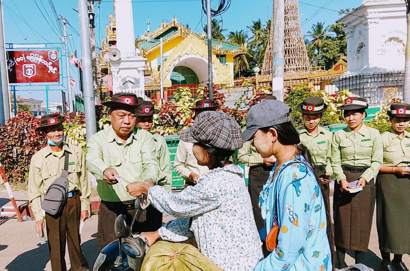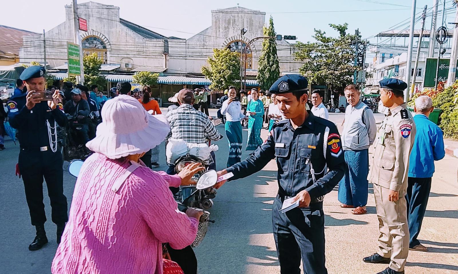 အဆိုပါ လူစည်ကားရာနေရာများတွင် သွားလာနေကြသော ပြည်သူများအား မြို့နယ်အုပ်ချုပ်ရေးမှူး ဦးစိုးမြင့်လှိုင်နှင့် အထွေထွေအုပ်ချုပ်ရေးဦးစီးဌာနမှ ဝန်ထမ်းများ၊ မြို့နယ်ဌာနဆိုင်ရာအကြီးအကဲများနှင့် ဝန်ထမ်းများ၊ အမျိုးသမီးရေးရာ၊ မိခင်နှင့်ကလေးစောင့်ရှောက်ရေးအသင်းအဖွဲ့များ ပါဝင်သော ပူးပေါင်းအဖွဲ့သည် ရွေးကောက်ပွဲအောင်မြင်ရေး ဒို့အတူတူမဲပေးကြမယ်၊ ရွေးကောက်ပွဲမှသည် ပိုမိုကောင်းမွန်သော အနာဂတ်ဆီသို့၊ ဒီမိုကရေစီကို ပြန်လည်ဖော်ဆောင်ဖို့အတွက် ရွေးကောက်ပွဲမှလွဲ၍ အခြားနည်းမရှိပါ၊ ပြည်သူများလိုလားသည့် ဒီမိုကရေစီနိုင်ငံတော်ကို ရွေးကောက်ပွဲဖြင့်သာ ဖော်ဆောင်နိုင်ပါသည်၊ ဒီမိုကရေစီခိုင်မြဲဖို့ မဲရုံသွားပြီးမဲပေးကြပါစို့၊ နိုင်ငံတော်ဖွံ့ဖြိုးတိုးတက်ဖို့ ဦးဆောင်နိုင်သူရွေးချယ်ကြပါစို့စသည့် အကြောင်းအရာများပါဝင်သော အသိပညာပေး လက်ကမ်းစာစောင်များအား ဖြန့်ဝေပေးခဲ့ကြကြောင်း သိရသည်။