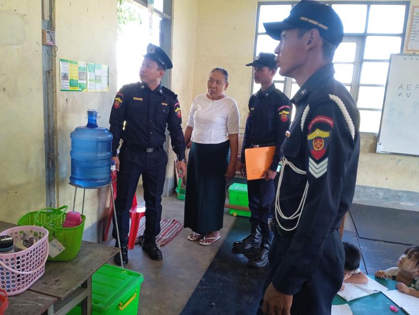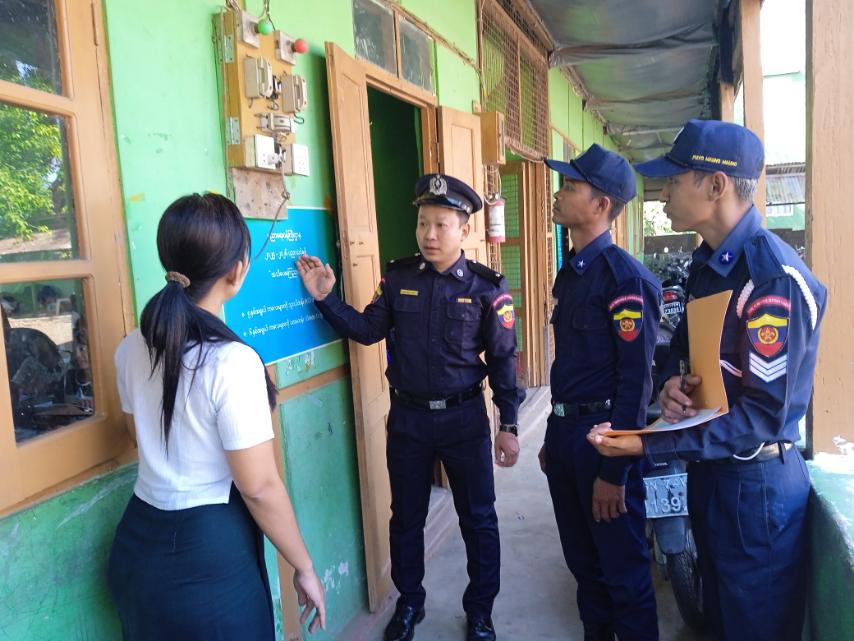 စစ်ဆေးဆောင်ရွက်ရာတွင် မဲရုံအဖြစ်အသုံးပြုမည့် စာသင်ကျောင်း အဆောက်အဦးများတွင် မီးဘေးလုံခြုံရေးနှင့်ပတ်သတ်သော ပစ္စည်းကိရိယာများထားသိုမှုအခြေအနေများ၊ လျှပ်စစ်မီးသွယ်တန်း သုံးစွဲမှုအခြေအနေများအား စစ်ဆေးဆောင်ရွက်ခြင်းဖြစ်ပြီး မီးဘေးလုံခြုံရေးအတွက် လိုက်နာဆောင်ရွက်ရမည့် အချက်များနှင့် ရှောင်ရှားရမည့် အချက်များကို မြို့နယ်မီးသတ်ဦးစီးဌာနက အဆောက်အဦးတာဝန်ရှိသူများထံ လမ်းညွှန်မှာကြားခဲ့ကြောင်း သိရသည်။