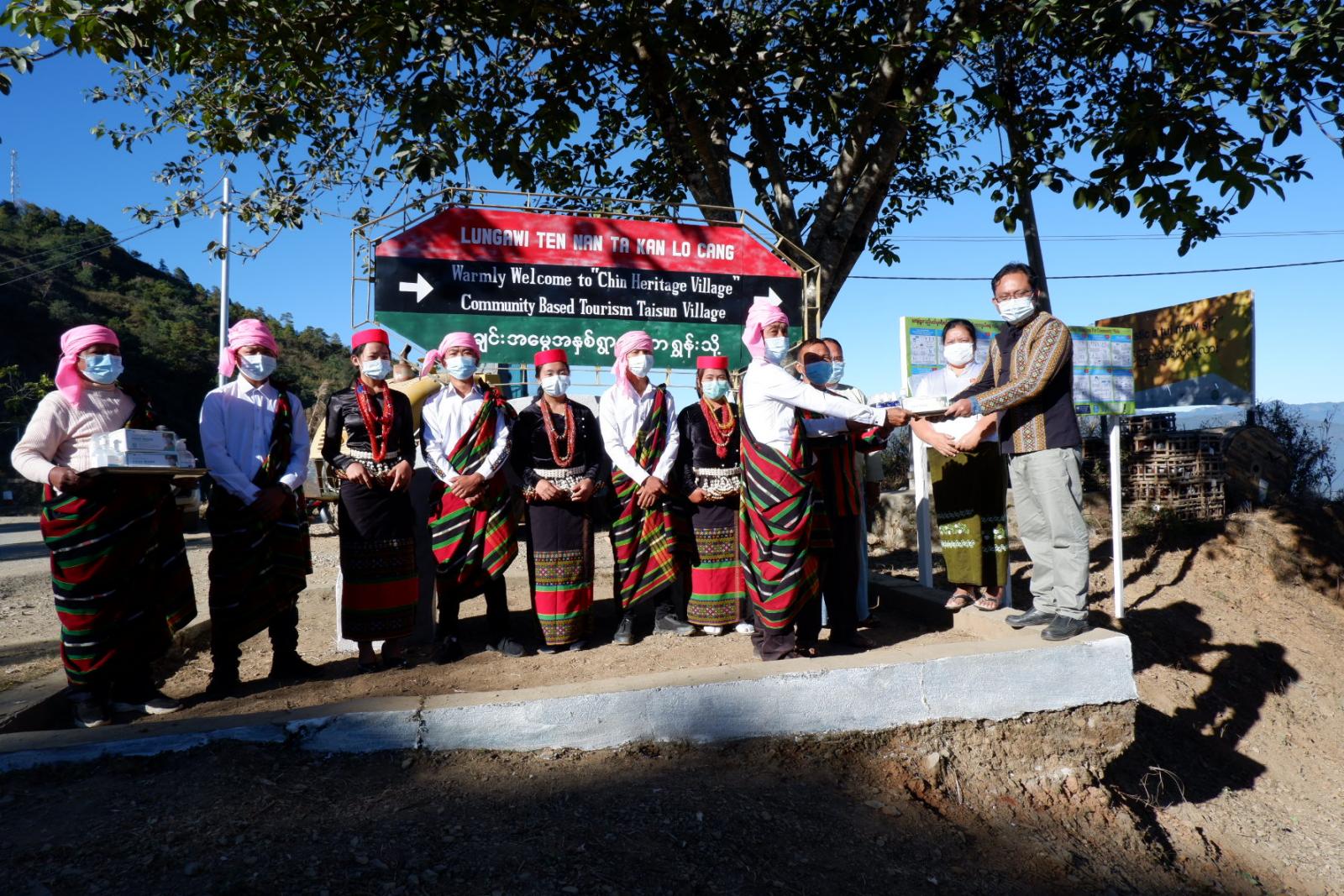 ချင်းပြည်နယ်ဒေသဆိုင်ရာ ခရီးသွားလုပ်ငန်း ကော်မတီအနေဖြင့် ရေးဆွဲထုတ်ပြန်ထားရှိသော ကျေးရွာလည်ပတ်မှု ခရီးစဉ်နှင့် လူထုအခြေပြုခရီးသွားလုပ်ငန်း (Community Based Tourism) များအတွက် ကိုဗစ်-၁၉ရောဂါ ကြိုတင် ကာကွယ်ရေးဆိုင်ရာ အကြံပေးလမ်းညွှန်ချက်များကို ခရီးသွား ဧည့်သည်များ သိရှိနိုင်ရန်နှင့် ကျေးရွာရှိ ဝန်ဆောင်မှုပေးသူများ လိုက်နာ ဆောင်ရွက်နိုင်ရန် အသိပညာပေး ဆိုင်းဘုတ်များ စိုက်ထူခြင်းနှင့် ကိုဗစ်-၁၉ရောဂါ ကာကွယ်ရေးဆိုင်ရာ ပစ္စည်းများ ပေးအပ်လှူဒါန်းခြင်းကို လူထုအခြေပြု ခရီးသွားလုပ်ငန်း တည်ရှိရာ ဖလမ်းမြို့နယ်၊ တာရွှန်းကျေးရွာနှင့် ကလောမွန်ကျေးရွာတို့တွင် ယနေ့နံနက် ၉ နာရီက ပြုလုပ်သည်။