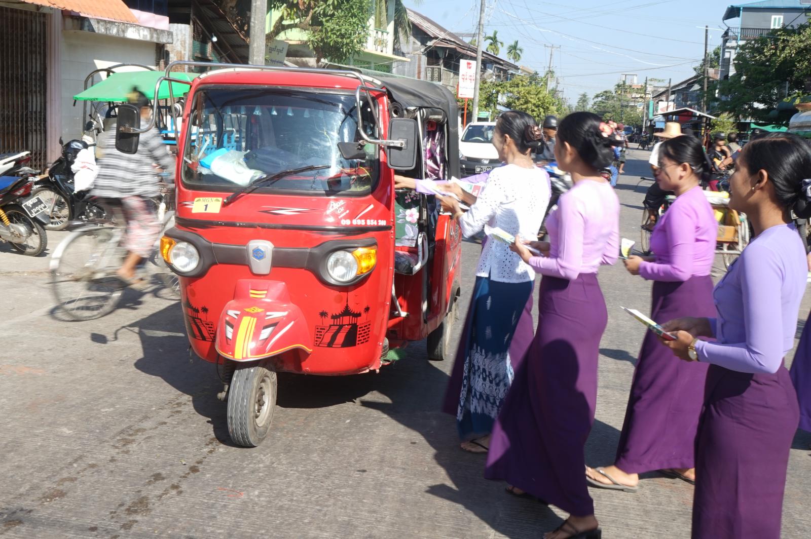 ပါတီစုံဒီမိုကရေစီအထွေထွေရွေးကောက်ပွဲတွင် နိုင်ငံသားတိုင်း မဲပေးပိုင်ခွင့်အခွင့်အရေး ပြည့်ဝစွာရရှိစေရေး၊ မဲပေးခြင်းသည် နိုင်ငံသားများမှ အမျိုးသားရေးတာဝန် ထမ်းဆောင်ခြင်း ဖြစ်သည့်အတွက် “ဒို့အတူတူမဲပေးကြမယ်” အသိပညာပေးလက်ကမ်းစာစောင်များကို လူစည်ကားရာနေရာများရှိ ပြည်သူများအား ဖြန့်ဝေပေးခဲ့သည်။