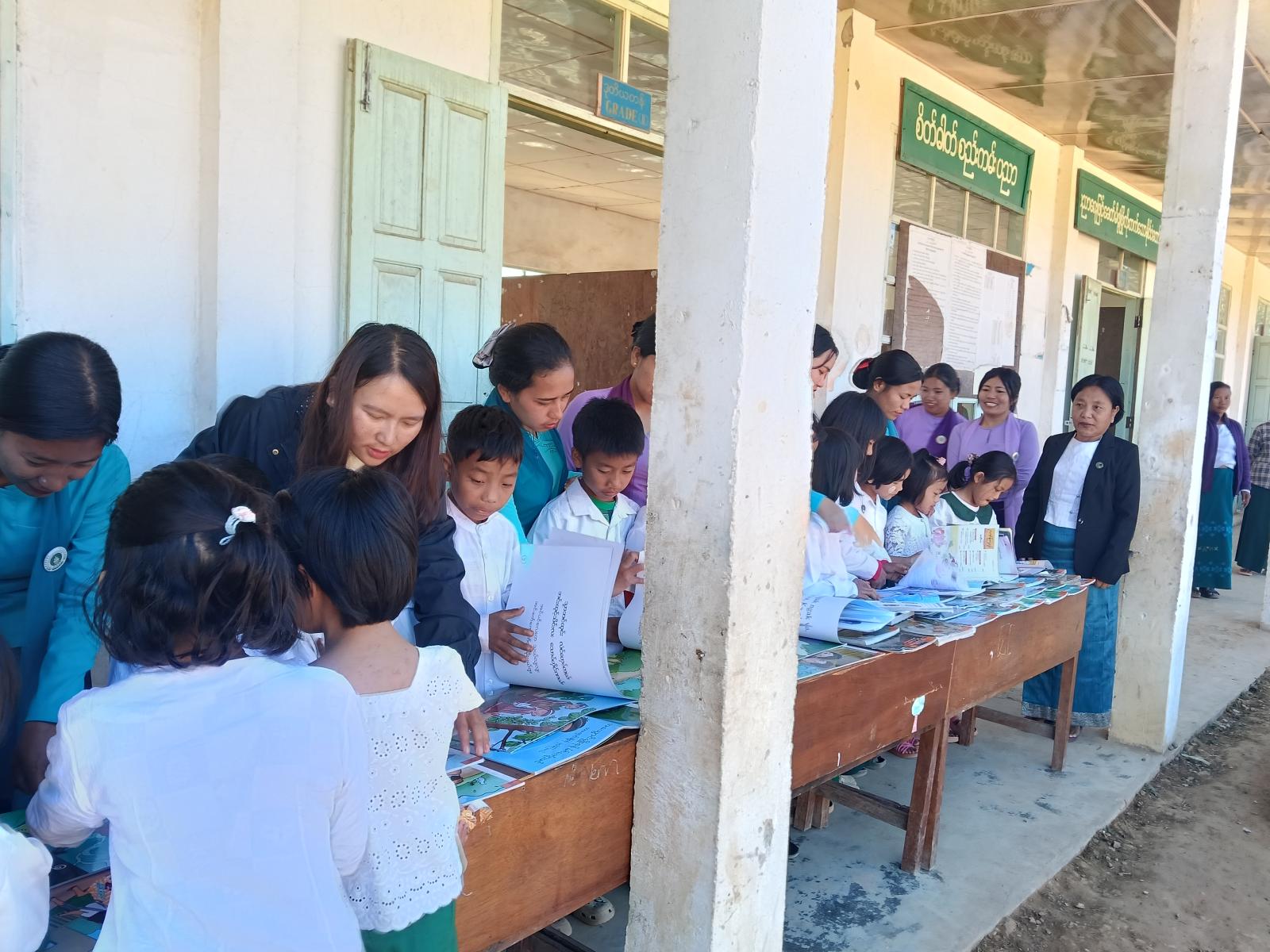 ဆက်လက်၍ မြို့နယ် ပြန်ကြားရေးနှင့်ပြည်သူ့ဆက်ဆံရေးဦးစီးဌာနက နယ်လှည့်စာကြည့်တိုက်ဆောင်ရွက်ရာ ကျောင်းသား၊ ကျောင်းသူများက စိတ်ပါဝင်စားစွာ ဖတ်ရှုလေ့လာကြကြောင်း သိရသည်။