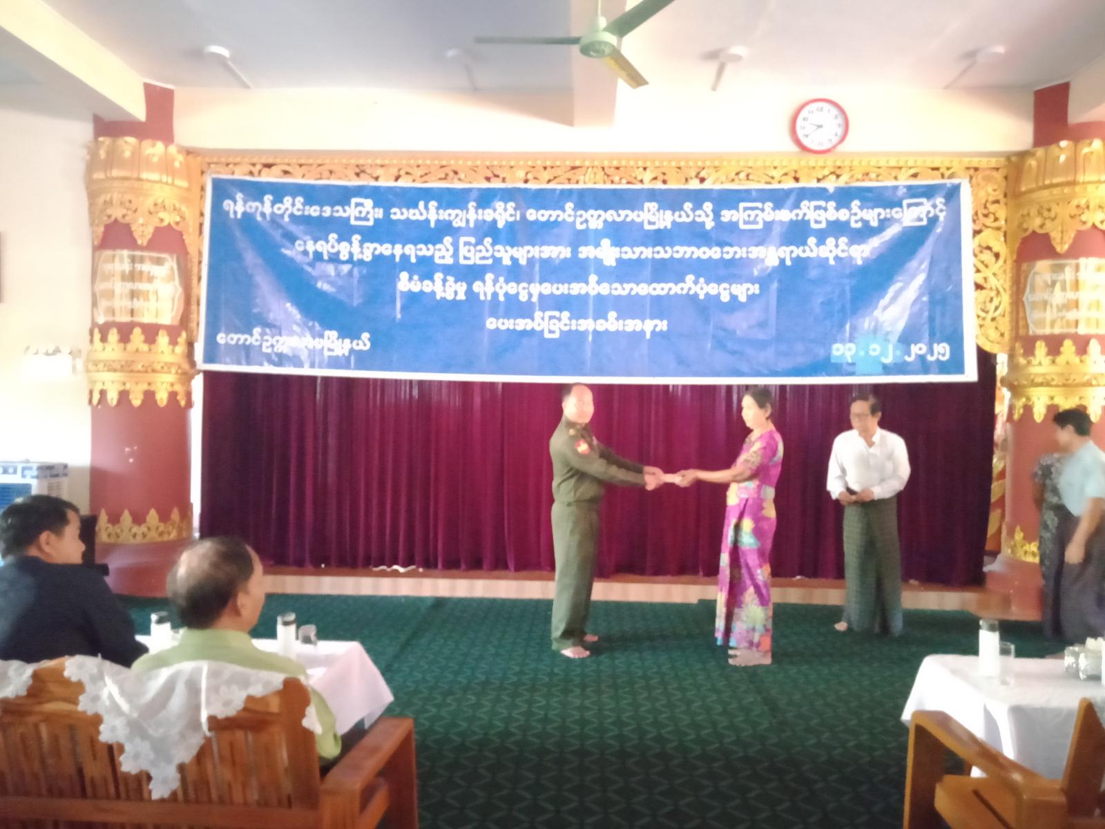 ရန်ကုန်တိုင်းဒေသကြီး၊ သင်္ဃန်းကျွန်းခရိုင်၊ တောင်ဥက္ကလာပမြို့နယ်အတွင်း ဒေသအသီးသီးမှ ယာယီနေရပ်စွန့်ခွာပြည်သူများအား အမျိုးသားသဘာဝဘေးအန္တရာယ်ဆိုင်ရာ စီမံခန့်ခွဲမှုရန်ပုံငွေမှ ၂၀၂၅ ခုနှစ်၊ ဇူလိုင်လ၊ သြဂုတ်လနှင့်စက်တင်ဘာလ(၃)လစာအတွက် တစ်ဦးလျှင် ငွေကျပ် ၆၀၀၀၀ နှုန်းဖြင့် ထောက်ပံ့ငွေပေးအပ်ခြင်းအခမ်းအနားကို ယမန်နေ့နံနက် ၉ နာရီခွဲက အမှတ်(၁၄) ရပ်ကွက်ရှိ သုံးထပ်ဆောင် သာသနာ့ဗိမ္မာန်တော်ကြီး၌ ကျင်းပခဲ့သည်။