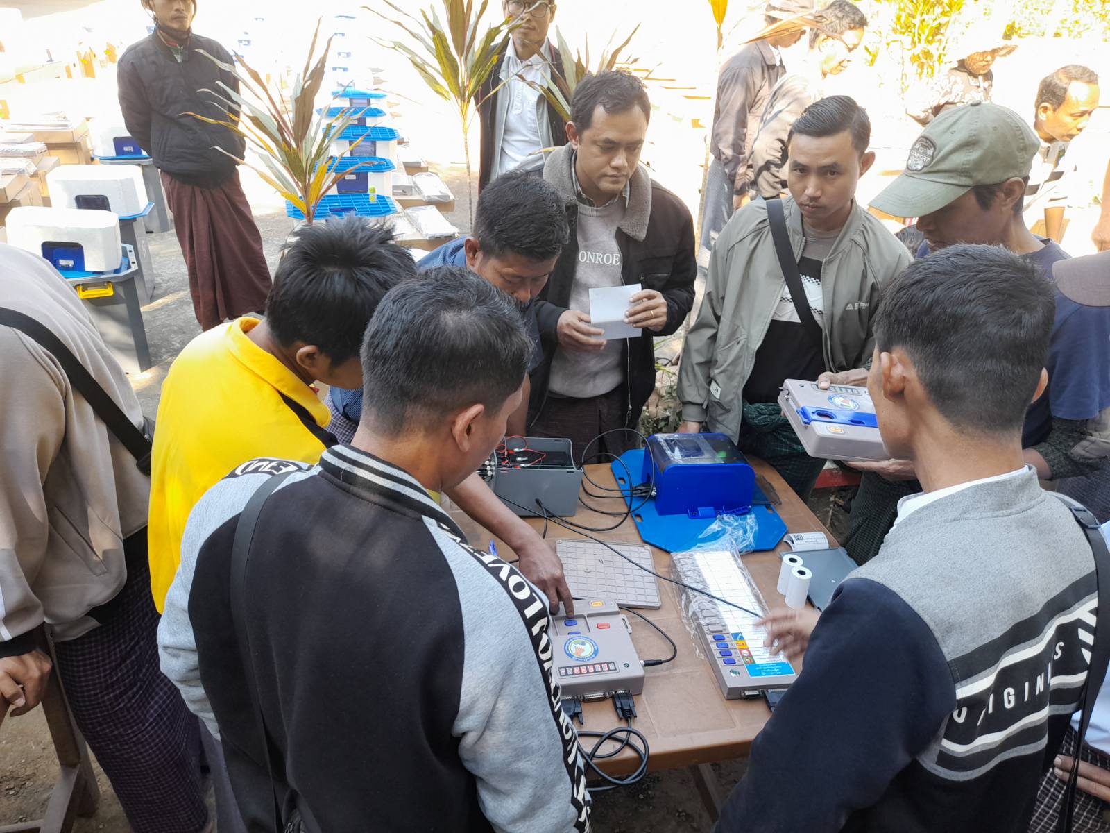 ထိုသို့ တပ်ဆင်ဆောင်ရွက်ရာတွင် မြို့နယ်ရွေးကောက်ပွဲကော်မရှင်အဖွဲ့ခွဲမှ တာဝန်ရှိသူများ၏ ကြီးကြပ်မှုဖြင့် မြန်မာအီလက်ထရောနစ်မဲပေးစက် (MEVM) အလုံး ၁၀၀ အား နည်းပညာအထောက်အကူပြုအဖွဲ့နှင့်စက်ကိုင်အဖွဲ့တို့က တပ်ဆင်ပြီး မဲပေးစက်များ၏ လုပ်ဆောင်ချက် မှန်ကန်မှုရှိမရှိတို့ကို တာဝန်ရှိသူတို့က စစ်ဆေးဆောင်ရွက်သည်။