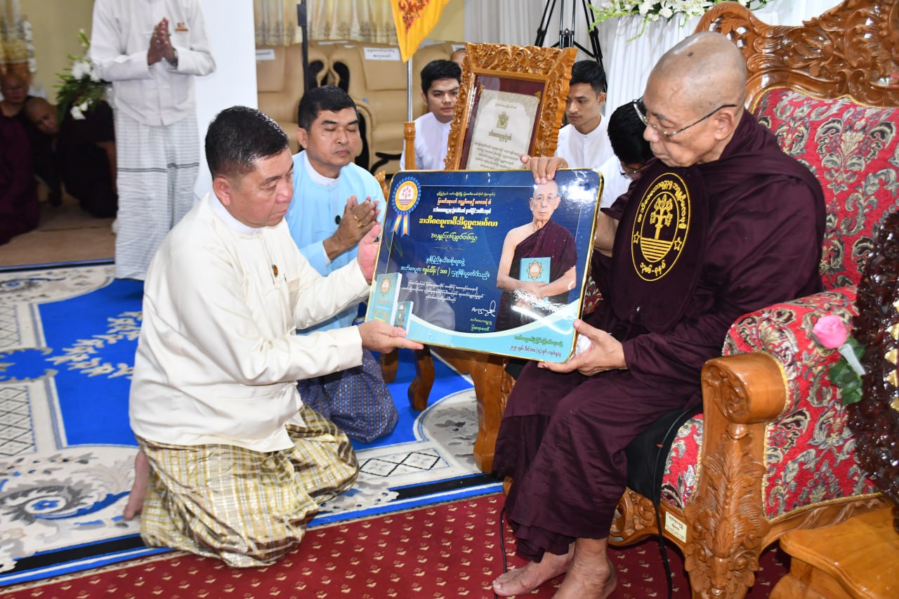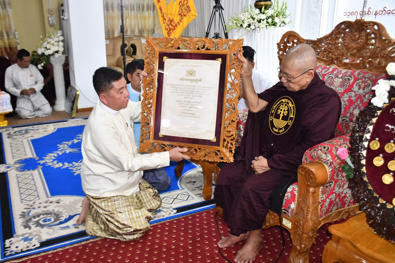 ထို့နောက် မွန်ပြည်နယ်ဝန်ကြီးချုပ်က မြဆရာတော်ဘုရားကြီးအား အဘိဓဇမဟာရဠဂုရုဘွဲ့ လက်မှတ်တော်ကို ထပ်ဆင့်ဆက်ကပ်ခဲ့ပြီး အရှေ့တောင်တိုင်းစစ်ဌာနချုပ် တိုင်းမှူးမှ ဘွဲ့တံဆိပ်တော်နှင့် အလံတော်ကို ထပ်ဆင့်ဆက်ကပ်ခဲ့သည်။