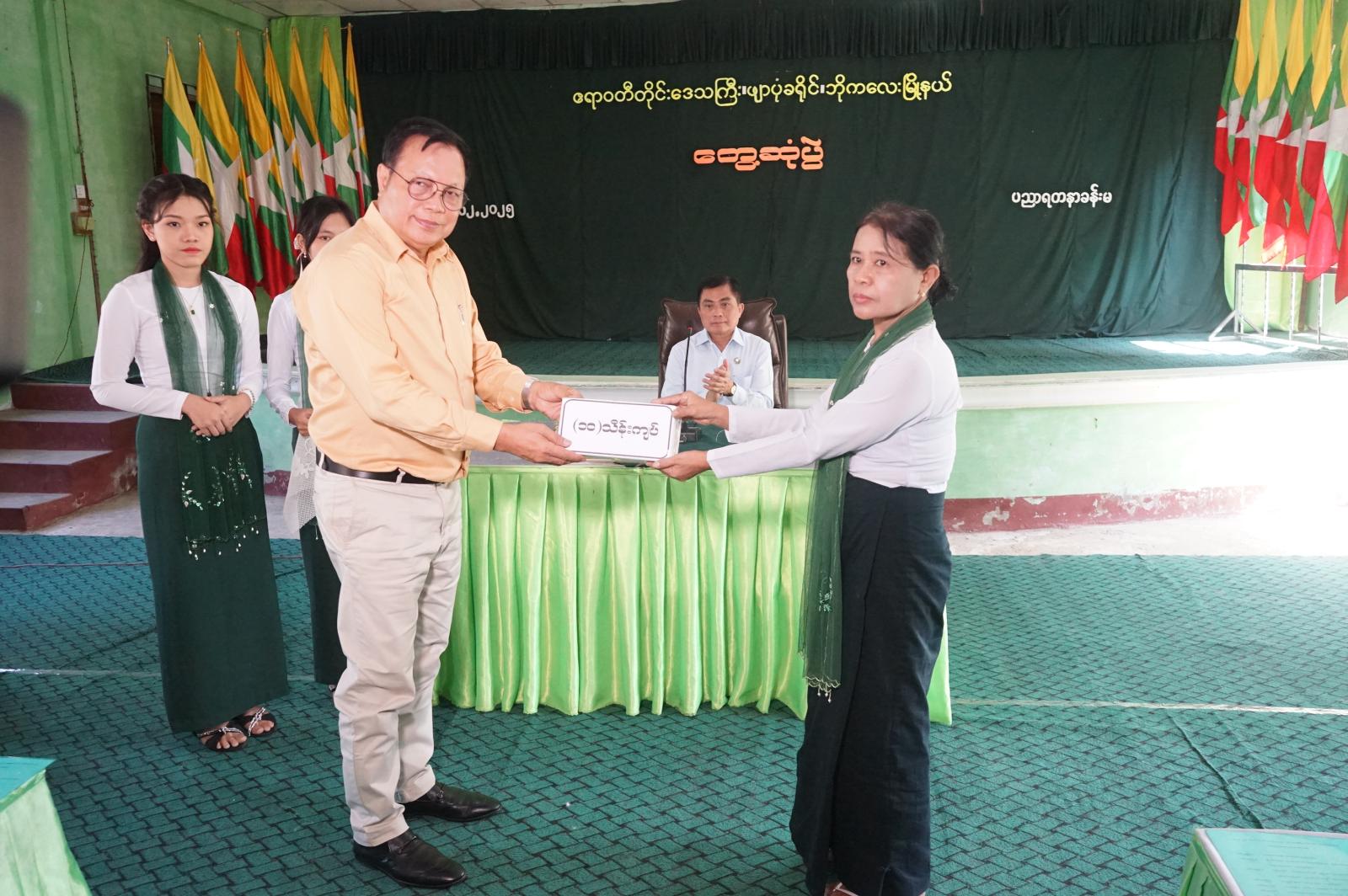 ဆက်လက်၍ မြန်မာနိုင်ငံဆန်စပါးအသင်းချုပ်ဥက္ကဋ္ဌ ဦးရဲမင်းအောင်၊ မြန်မာနိုင်ငံဆန်စပါး စိုက်ပျိုးထုတ်လုပ်သူများအသင်းဥက္ကဋ္ဌ ဦးခင်မြင့်၊ မြန်မာနိုင်ငံဆန်စပါးကုန်သည်များအသင်းဥက္ကဋ္ဌ ဦးအောင်မြင့်နှင့် မြန်မာနိုင်ငံဆန်စက်လုပ်ငန်းရှင်များအသင်းဥက္ကဋ္ဌ ဦးလူမော်မြင့်မောင်တို့က ဘိုကလေးမြို့နယ်အတွင်း ကျန်းမာရေးစောင့်ရှောက်မှုလုပ်ငန်းများအတွက် ငွေကျပ်(၂၅)သိန်း၊ အမှတ်(၁)၊ အမှတ်(၂)၊ အမှတ်(၃) အခြေခံပညာအထက်တန်းကျောင်းများအတွက် ကျောင်းဝတ်စုံစရိတ် တစ်ကျောင်းလျှင် ငွေကျပ်(၁၀)သိန်းနှုန်းဖြင့် လှူဒါန်းကြရာ ကျန်းမာရေးကဏ္ဍအတွက် ဘိုကလေးကုတင်(၁၀၀)ပြည်သူ့ဆေးရုံမှ ကလေးအထူးကုဆရာဝန်မှလည်းကောင်း၊ ကျောင်းဝတ်စုံစရိတ်အတွက် ကျောင်းအုပ်ဆရာကြီး၊ ဆရာမကြီးများမှလည်းကောင်း လက်ခံရယူခဲ့ကြကြောင်း သိရသည်။