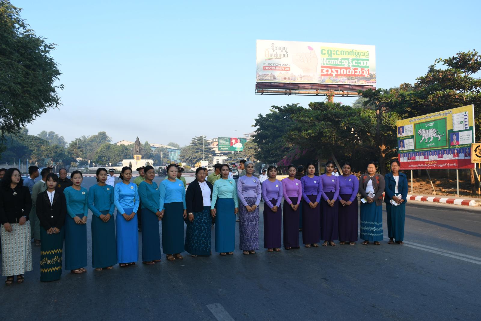 ထိုသို့ဆောင်ရွက်ရာတွင် စစ်ကိုင်းတိုင်းဒေသကြီးမိခင်နှင့်ကလေးစောင့်ရှောက်မှုကြီးကြပ်ရေးအဖွဲ့နှင့် အမျိုးသမီးရေးရာအဖွဲ့ဥက္ကဋ္ဌ ဒေါ်သီသီစိုး၊ ခရိုင် စီမံခန့်ခွဲရေးနှင့် အုပ်ချုပ်ရေးကော်မတီဥက္ကဋ္ဌ ဦးထွန်းထွန်းဝင်း၊ မြို့နယ်စီမံခန့်ခွဲရေးနှင့် အုပ်ချုပ်ရေးကော်မတီ ဥက္ကဋ္ဌ ဦးကျော်စွာမောင်စိုးနှင့် ဌာနဆိုင်ရာများက ခရိုင်ပြန်ကြားရေးနှင့်ပြည်သူ့ဆက်ဆံရေးဦးစီးဌာနမှ ဖြန့်ဝေသော “ ဒို့အတူတူမဲပေးကြမယ်” လက်ကမ်းစာစောင်များဖြန့်ဝေပြီး မော်တော်ယာဉ်များအား စတစ်ကာများ ကပ်ပေးခဲ့ကြောင်း သိရသည်။