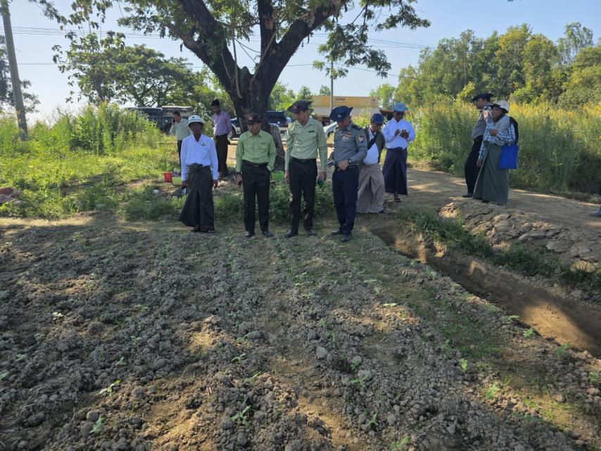 ထို့နောက် ခရိုင်စီမံခန့်ခွဲရေးနှင့် အုပ်ချုပ်ရေးကော်မတီဥက္ကဋ္ဌ ဦးသူအောင်နှင့် အဖွဲ့သည် ဂျိုးဖြူကျေးရွာ ကွင်းအမှတ် ၇၄၀၊ ဦးပိုင်အမှတ် (၅၀ ခ) ရှိ တောင်သူ ဦးကျော်ဝင်းအောင်၏ လယ်မြေ ၂ ဒဿမ ၁၀ ဧကတွင် စိုက်ပျိုးထားသည့် ၁၇ ရက်သား နေကြာပျိုးပင်များအား တစ်ကျင်းတစ်ပင်နှုန်း အပင်သားခွဲစိုက်ပျိုးနေမှုအား ကွင်းဆင်းကြည့်ရှုခဲ့ပြီး လိုအပ်ချက်များကို မှာကြားခဲ့ကြောင်း သိရသည်။
