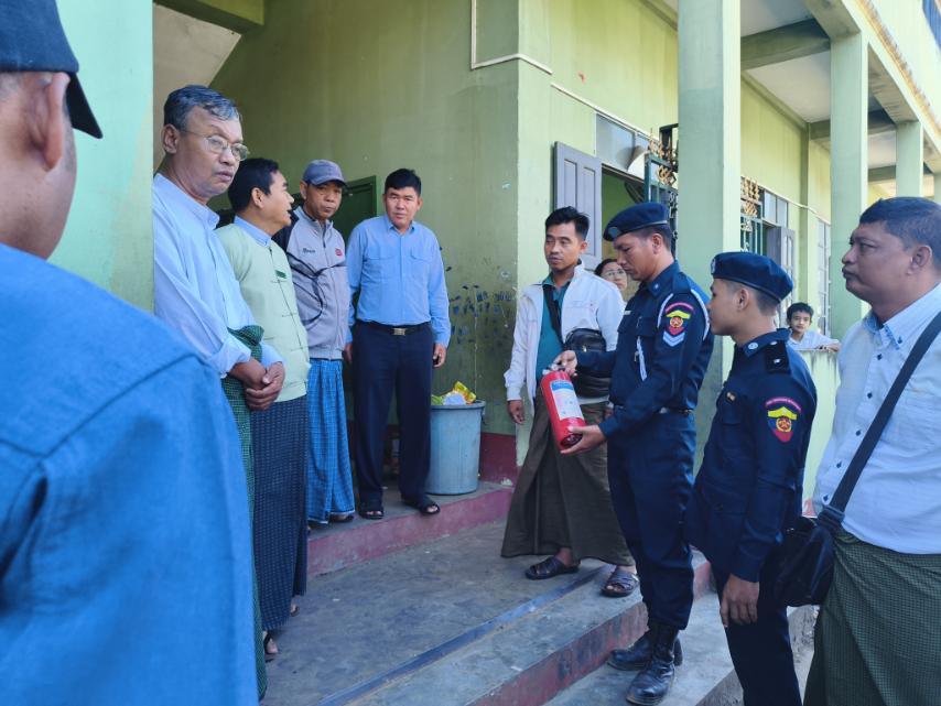 ထိုသို့ ကွင်းဆင်းစစ်ဆေးရာတွင် မြို့နယ်မီးသတ်ဦးစီးမှူး ဦးဇော်ချစ်ထက် ဦးဆောင်၍ မီးသတ်တပ်ဖွဲ့ဝင်များက မဲရုံဆောင်ရွက်မည့်နေရာများ၌ မီးသတ်ဆေးဘူးထားရှိမှု ရှိ/မရှိ၊ ထားရှိသောမီးသတ်ဆေးဘူးများ ကောင်းမွန်မှု ရှိ/မရှိနှင့် မဲရုံအနီးပတ်ဝန်းကျင်များတွင် မီးလောင်မှု၊ မီးလန့်မှုမဖြစ်ပွားစေရေးမီးဘေးအန္တရာယ် ကြိုတင်ကာကွယ်ရေးလုပ်ငန်းများ ဆောင်ရွက်ထားရှိမှုအခြေအနေတို့ကို ကွင်းဆင်းစစ်ဆေးခဲ့ရာ မီးဘေးလုံခြုံရေး စစ်ဆေးနေမှုအား ခရိုင်စီမံခန့်ခွဲရေးနှင့်အုပ်ချုပ်ရေးကော်မတီအဖွဲ့ဝင် ဦးသန်းထွဋ်အောင်နှင့် ခရိုင်အဆင့်ဌာနဆိုင်ရာ တာဝန်ရှိသူများက လိုက်လံကြည့်ရှုခဲ့ပြီး လိုအပ်ချက်များကို လမ်းညွှန်မှာကြားခဲ့ကြောင်း သိရသည်။