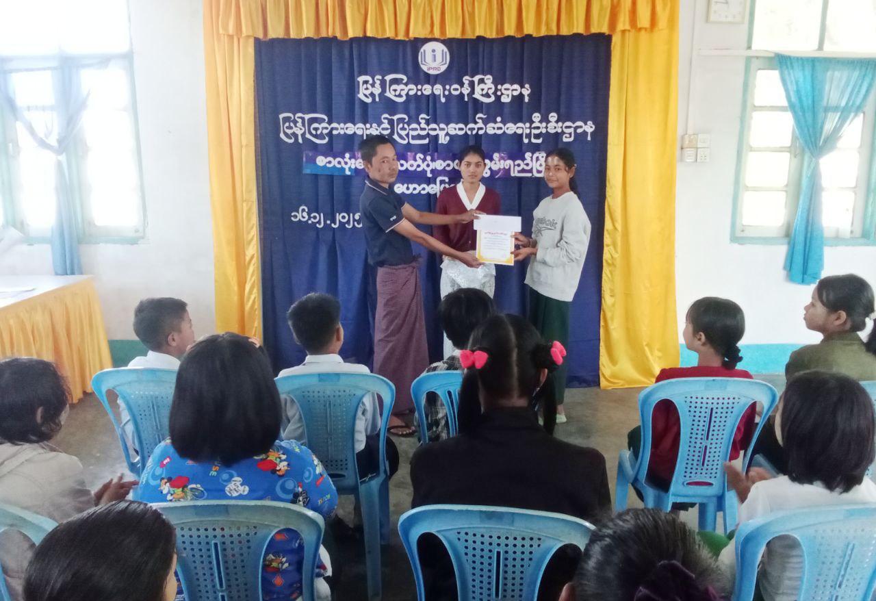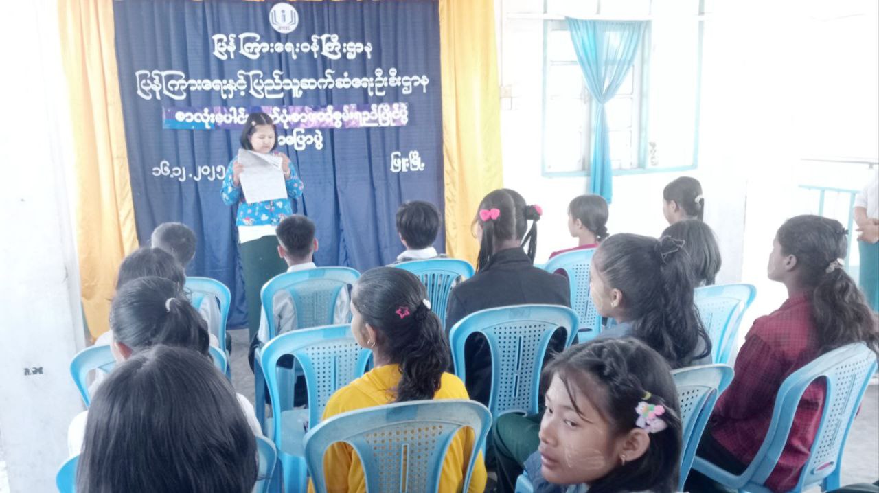 ဆက်လက်၍ ဖြူးမြို့နယ် ပြန်ကြားရေးနှင့်ပြည်သူ့ဆက်ဆံရေးဦးစီးဌာန၊ ဒုတိယဦးစီးမှူး ဒေါ်နွယ်နွယ်အေးက ကျောင်းသား/သူများအား သဘာဝဘေးအန္တရာယ်ဆိုင်ရာအကြောင်း အသိပညာပေးဟောပြော၍ စာဖတ်စွမ်းရည်ပြိုင်ပွဲ ပြုလုပ်ပေးခဲ့ကြောင်း သိရသည်။