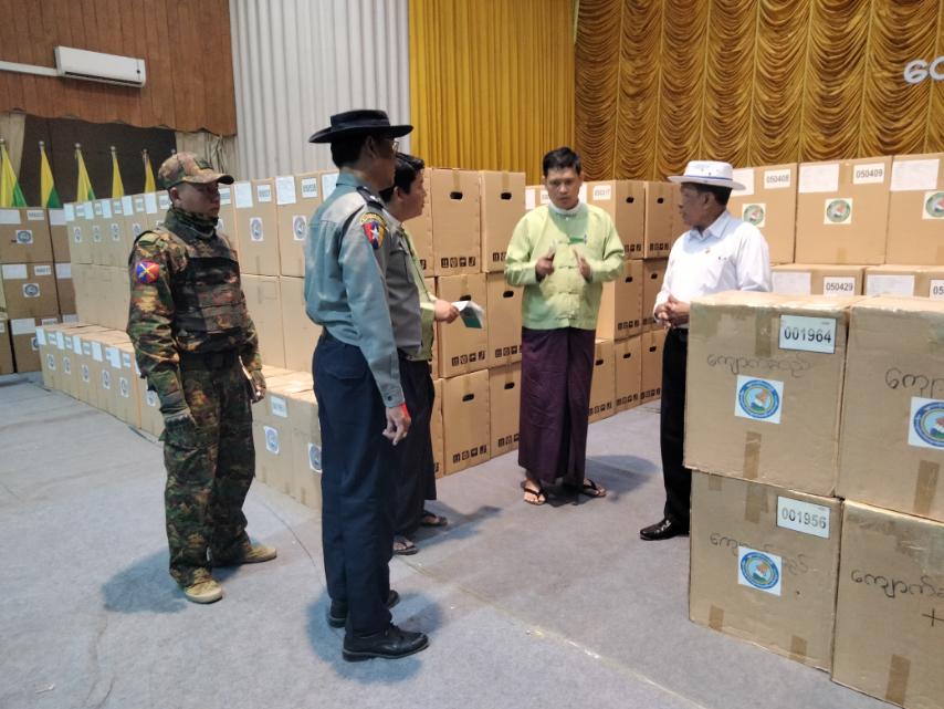 ဆက်လက်၍ တိုင်းဒေသကြီးဝန်ကြီးနှင့်တာဝန်ရှိသူများသည် သင်တောင်းကျေးရွာအုပ်စု၊ မဲရုံအမှတ်(၁)နှင့် မြေကြည်လင်ရပ်ကွက်၊ အထက(၃)၌ ပြုလုပ်ထားသည့် မဲရုံအမှတ်(၁) ခင်းကျင်းပြင်ဆင်ထားရှိမှုကို သွားရောက်၍ မဲရုံဥပဓိရုပ်ကောင်းမွန်မှု ရှိ/မရှိ၊ မဲရုံအတွင်းရှိဆန္ဒပြုခန်း အလင်းရောင်ရရှိရေး ဆိုလာမီးအိမ်များ ပြင်ဆင်ထားရှိရန်၊ မြန်မာအီလက်ထရောနစ် မဲပေးစက် (MEVM)များထားရှိသည့် မြို့တော်ခန်းမ၌ လုံခြုံရေးစုဖွဲ့ထားရှိမှုနှင့် မီးဘေးအန္တရာယ်ကြိုတင် ကာကွယ်ရေးအတွက် ပြင်ဆင်ထားရှိမှုများအား ကြည့်ရှုစစ်ဆေးပြီး လိုအပ်သည်များ လမ်းညွှန်မှာကြားခဲ့ကြောင်း သိရသည်။