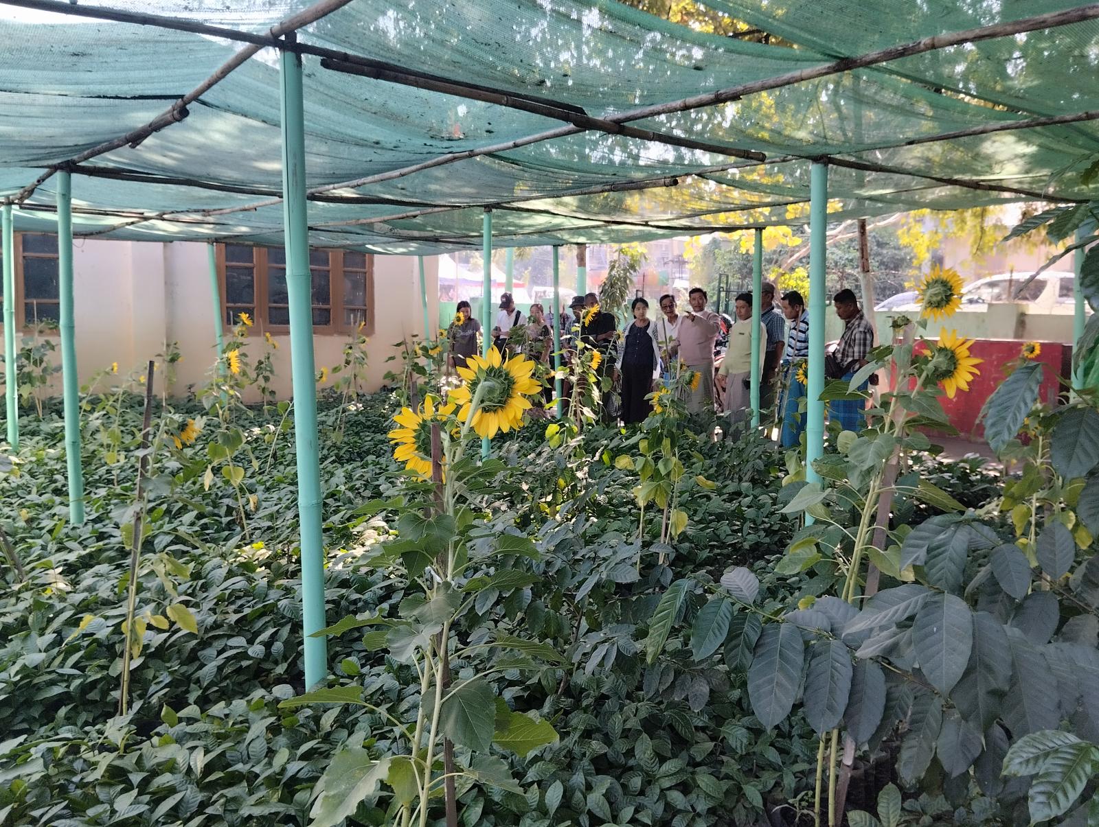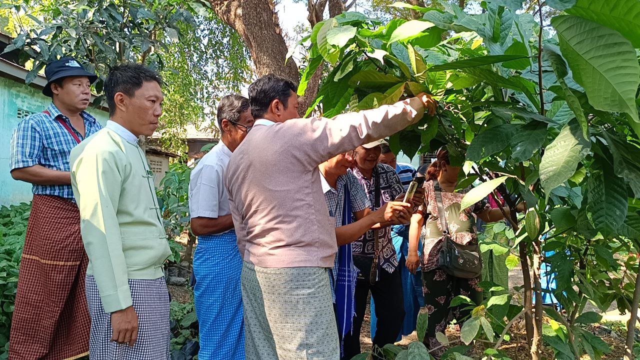 ဆက်လက်ပြီး မြို့နယ်စိုက်ပျိုးရေးဦးစီးဌာနမှ ကျေးရွာတာဝန်ကျ ကွင်းဝန်ထမ်းများက တက်ရောက်လာကြသည့် တောင်သူများအား ပန်းတိုင်အထွက်နှုန်းသတ်မှတ်ထားသည့် သီးနှံ(၁၀)မျိုးနှင့်စပ်လျဥ်း၍ စစ်တမ်းကောက်ယူဆောင်ရွက်ခဲ့ကြပြီး မြို့နယ်စိုက်ပျိုးရေးဦးစီးဌာနရုံး၌စိုက်ပျိုး ဖြစ်ထွန်းသည့် နေကြာပင်၊ ကော်ဖီပင်၊ ချောကလက်ပင် စသည့် နှစ်ရှည်ပင်များနှင့်ပျိုးပင်များကို တာဝန်ရှိသူများနှင့် တောင်သူများက ကွင်းဆင်းကြည့်ရှုခဲ့ကြကြောင်း သိရသည်။