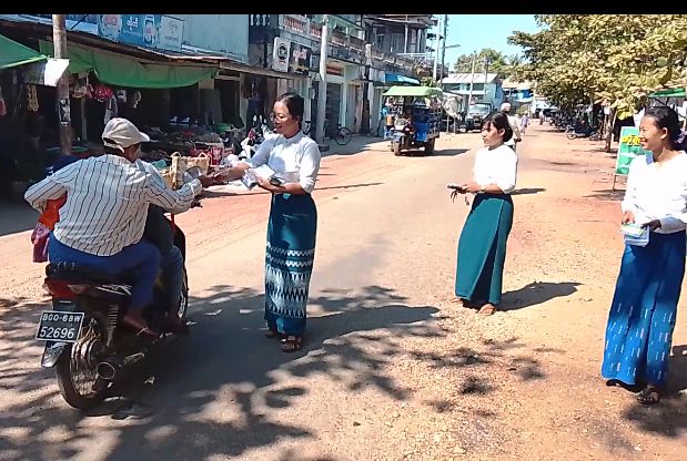 ထိုသို့ ဆောင်ရွက်ကြရာ၌ မြို့နယ်အတွင်းလူစည်ကားရာနေရာ ဈေး(၁)၊ ဈေး(၂)ရပ်ကွက်များအတွင်းရှိ လမ်းမများတွင် သွားလာနေကြသော ပြည်သူများအား ဖြန့်ဝေပေးခဲ့ကြပြီး မြို့မဈေးအတွင်း၌လည်း ဈေးရောင်း/ဈေးဝယ် ပြည်သူများအား ဆက်လက်ဖြန့်ဝေ ပေးခဲ့ကြကြောင်း သိရသည်။