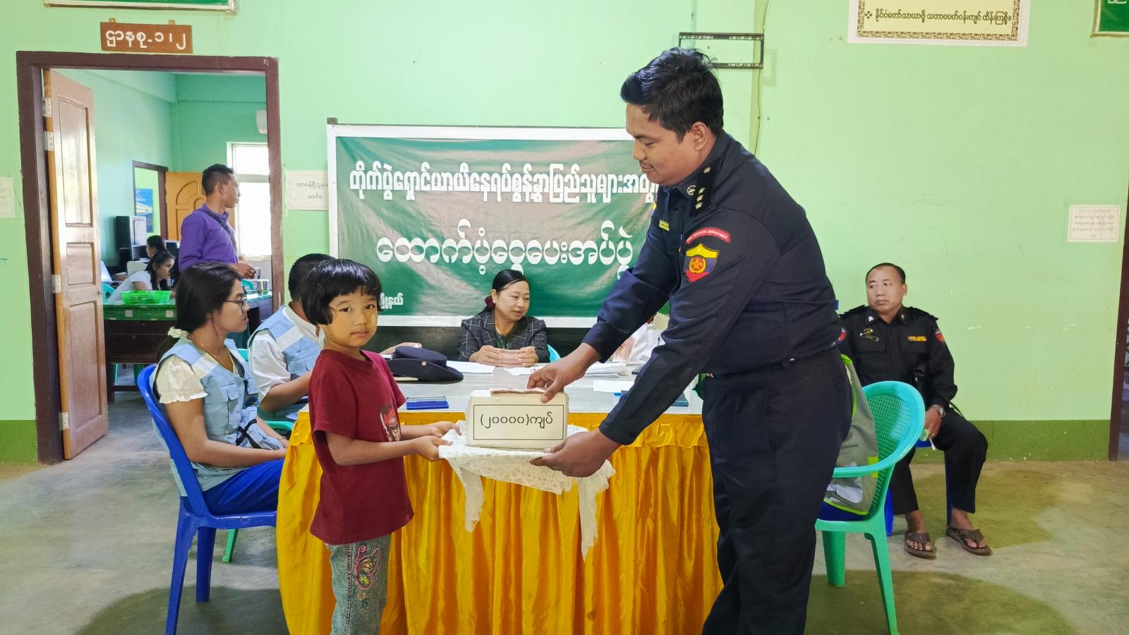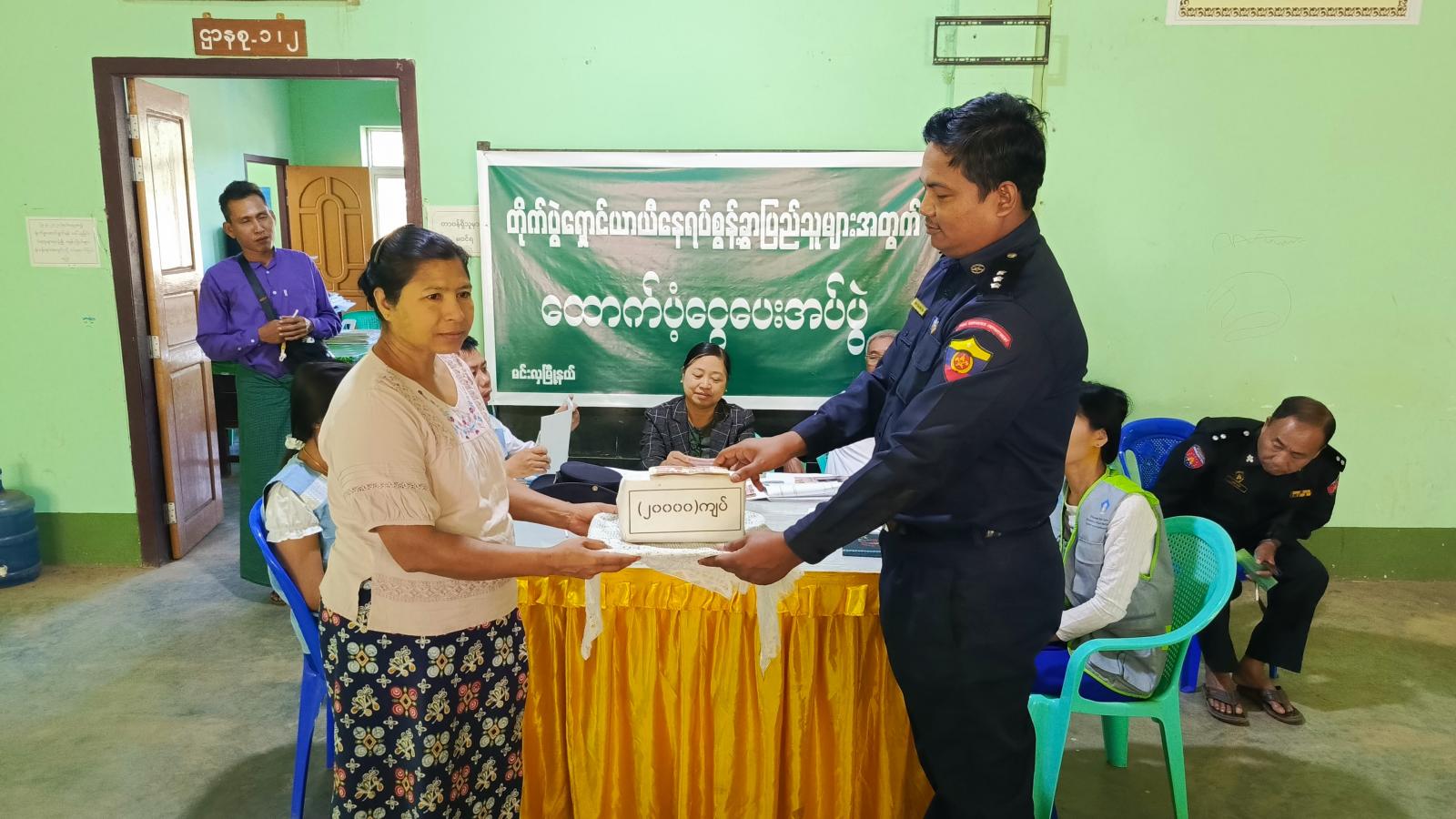 ပဲခူးတိုင်းဒေသကြီး၊သာယာဝတီခ ရိုင်၊မင်းလှမြို့နယ်တွင် အကြမ်းဖက်ဖြစ်စဉ်များကြောင့် ယာယီနေရပ်စွန့်ခွာပြည်သူတစ်ဦးလျှင်(၂၀၀၀၀) ကျပ်နှုန်းစီပေးအပ်ခြင်းကို ဒီဇင်ဘာ ၁၇ ရက် နေ့လယ်ပိုင်းက မြို့နယ်အထွေထွေအုပ် ချုပ်ရေးဦးစီးဌာနရုံး၌ ဆောင်ရွက်သည်။