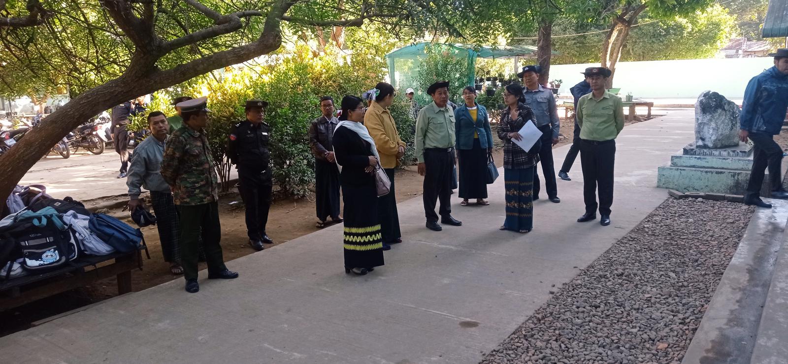 ထိုသို့ ကွင်းဆင်းစစ်ဆေးရာတွင် ခရိုင်စီမံခန့်ခွဲရေးနှင့်အုပ်ချုပ်ရေးကော်မတီဥက္ကဋ္ဌ ဦးကျော်စွာထွန်းနှင့် အဖွဲ့ဝင်များ၊ မြို့နယ်စီမံခန့်ခွဲရေးနှင့်အုပ်ချုပ်ရေးကော်မတီဥက္ကဋ္ဌ ဦးသန်းထွန်းနှင့်အဖွဲ့ဝင်များ၊ ခရိုင်/ မြို့နယ် ရွေးကောက်ပွဲကော်မရှင်အဖွဲ့ခွဲဥက္ကဋ္ဌနှင့်အဖွဲ့ဝင်များ၊ ခရိုင်/မြို့နယ်ဌာနဆိုင်ရာ တာဝန်ရှိသူများ၊ ရပ်ကွက်/ကျေးရွာ အုပ်ချုပ်ရေးမှူးများ၊ ဆရာ/ဆရာမများနှင့်တွေ့ဆုံ၍ ရွေးကောက်ပွဲအတွက် မဲရုံများဖွင့်လှစ်ဆောင်ရွက်မည့် အခြေခံပညာကျောင်းများရှိ စာသင်ခန်းများ အလင်းရောင်ကောင်းမွန်စွာရရှိမှု၊ ရေ၊ မီးပြည့်စုံကောင်းမွန်မှု ရှိ/မရှိ၊ မဲရုံနေရာကျယ်ဝန်းမှုနှင့် မီးဘေးအန္တရာယ် ကြိုတင်ကာကွယ်ရေးအခြေအနေများကို ကြည့်ရှုခဲ့သည်။