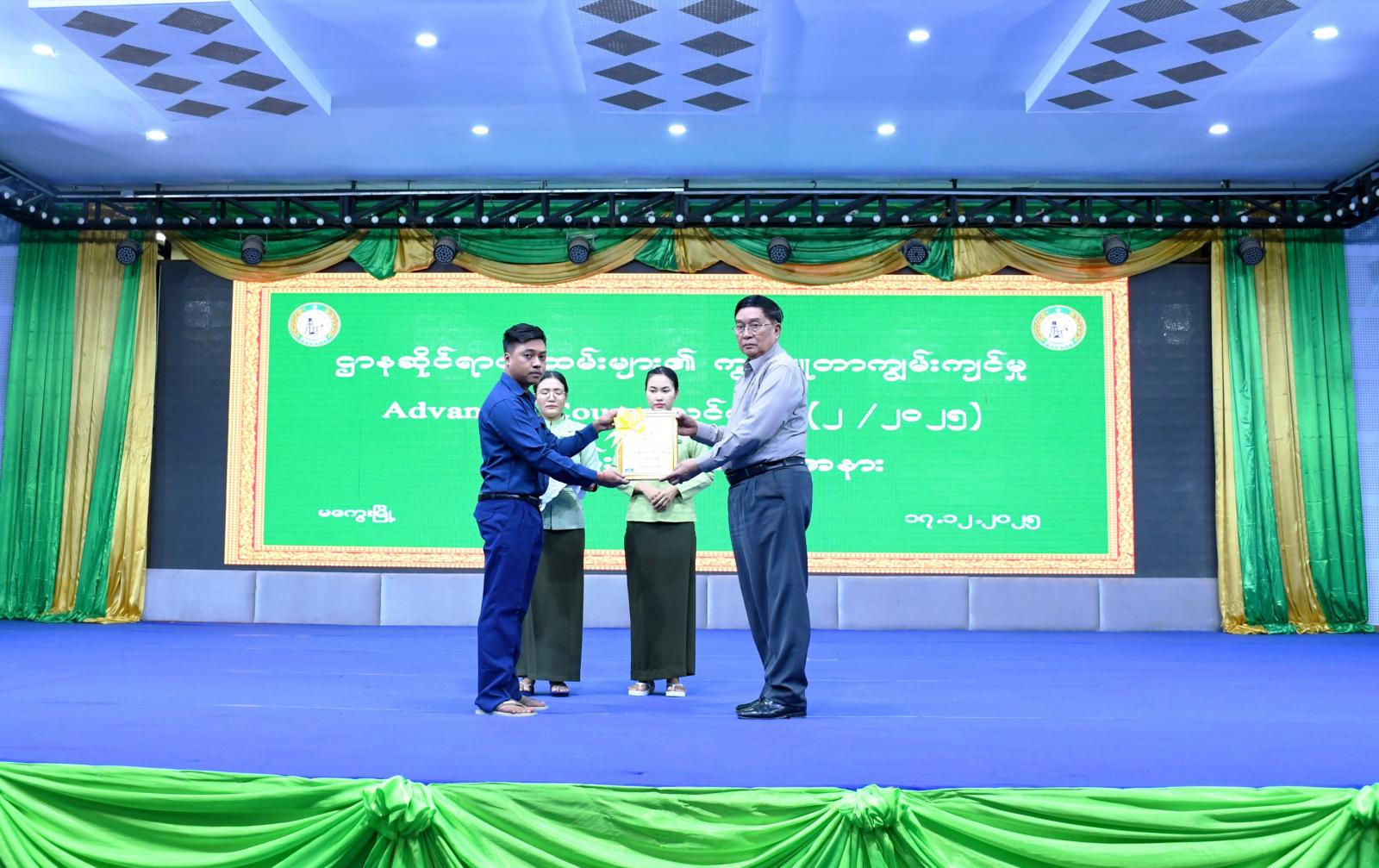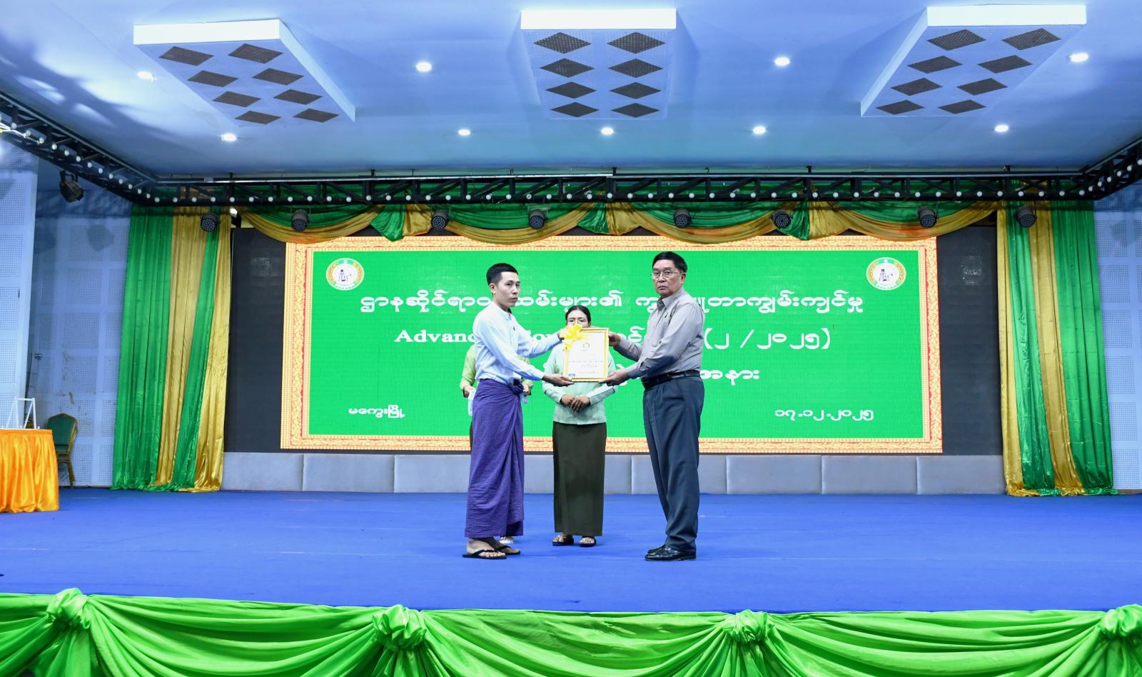 ထို့နောက် တိုင်းဒေသကြီးဝန်ကြီးချုပ်က သင်တန်းတွင် ထူးချွန်ဆုရရှိသူများအား ဆုချီးမြှင့်ခဲ့ပြီး၊ သင်တန်းဆင်းလက်မှတ်များအား တိုင်းဒေသကြီး လမ်းပန်းဆက်သွယ်ရေးဝန်ကြီး ဦးအောင်သူဦးက ချီးမြှင့်ပေးအပ်ကာ၊ တိုင်းဒေသကြီးအစိုးရအဖွဲ့ အတွင်းရေးမှူး ဦးတင်မောင်ဆွေက သင်ကြားပေးသည့် သင်တန်းဆရာမများအား ဂုဏ်ပြုဆုငွေများကို ချီးမြှင့်ပေးခဲ့သည်။