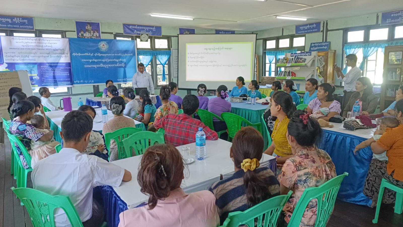 ဧရာဝတီတိုင်ဒေသကြီး၊ ပုသိမ်ခရိုင်၊ ကန်ကြီးထောင့်မြို့နယ်၌ မြို့နယ်လူမှုဝန်ထမ်းဦးစီးဌာနမှ ကြီးမှူး၍ မြို့နယ်အတွင်းရှိ MCCT အစီအစဉ်တွင် အကျိုးခံစားခွင့်ရှိသူများနှင့် မိသားစုဝင်များ၊ ရပ်ကွက်/ ကျေးရွာအုပ်စုအတွင်းရှိ ကိုယ်ဝန်ဆောင်မိခင်များနှင့် မိသားစုဝင်များအား အာဟာရနှင့်ကျန်းမာရေးဆိုင်ရာ အမူအကျင့်ပြောင်းလဲရေး အသိပညာပေးဟောပြောပွဲကို ဒီဇင်ဘာလ(၁၆)ရက်နေ့ နံနက်ပိုင်းက လူထုအခြေပြုဗဟိုဌာန၊ (Community Centre)ခန်းမတွင် ပြုလုပ်ခဲ့သည်။