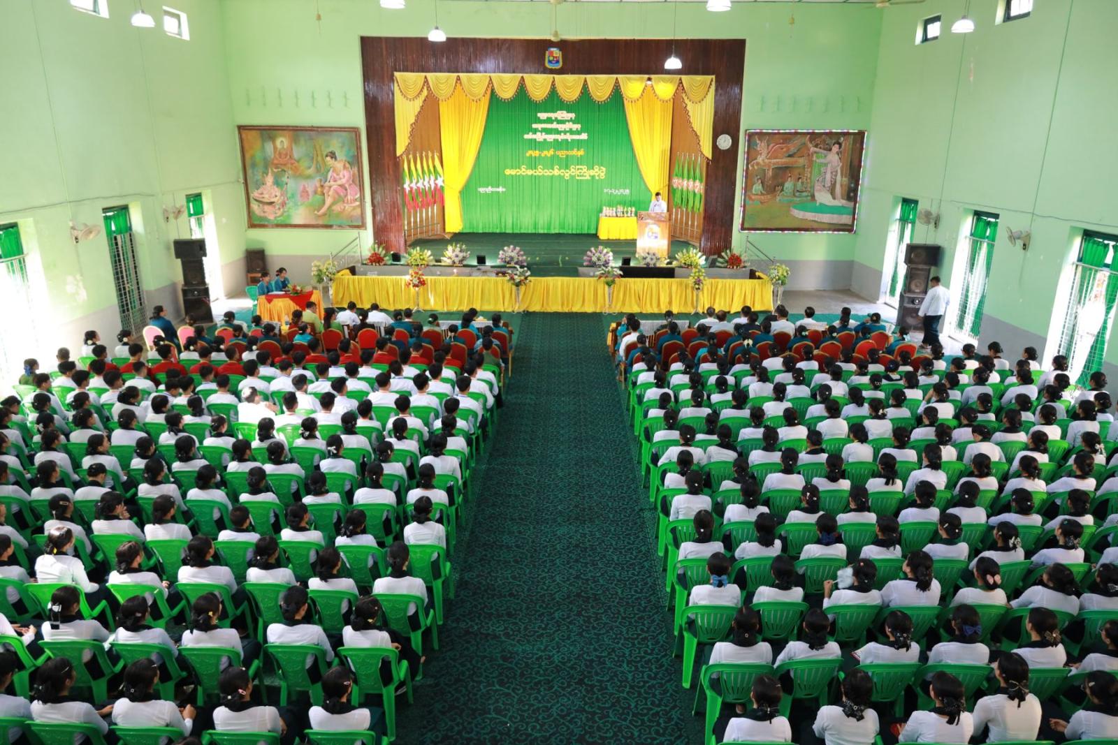 ရှေးဦးစွာ အခမ်းအနားကို သင်တန်းသား၊ သင်တန်းသူများက ဒို့ကျောင်းတော်၏ အနာဂတ်ကြယ်ပွင့်" သီချင်းဖြင့် သီဆိုဖျော်ဖြေခဲ့ကြပြီး ပြည်နယ်ဝန်ကြီးချုပ်က နိုင်ငံတစ်နိုင်ငံရဲ့ ဘက်စုံဖွံ့ဖြိုးတိုးတက်ရေး၊ ခေတ်မီရေးတို့အတွက် ပညာရေးဟာ အခြေခံကျတဲ့အုတ်မြစ်ပဲဖြစ်ပြီး ပညာရေးကဏ္ဍဖွံ့ဖြိုးတိုးတက်ရေးအတွက် တစ်မျိုးသားလုံးကျန်းမာကြံ့ခိုင်ရေးနှင့် ပညာရည်မြင့်မားရေးအတွက် ဦးတည်ကြိုးပမ်း ဆောင်ရွက်လျက်ရှိကြောင်း၊ သစ်လွင်မောင်မယ်များအနေဖြင့် တိုင်းရင်းသားအချင်းချင်း ရင်းနှီးချစ်ကြည်စွာ စုပေါင်းနေထိုင်ရင်း ဆရာကောင်း ဆရာမွန်များ ဖြစ်လာစေရေးအတွက် ဤကျောင်းက သင်ကြားပို့ချချက်များကို နာခံသင်ယူမှတ်သားပြီး နိုင်ငံ့အနာဂတ်သားကောင်း ရတနာများကို လက်ဆင့်ကမ်းမျှဝေနိုင်သူများဖြစ်စေရန် ကြိုးပမ်းဆောင်ရွက်ပေးကြစေလိုကြောင်းဖြင့် အမှာစကားပြောကြားခဲ့သည်။