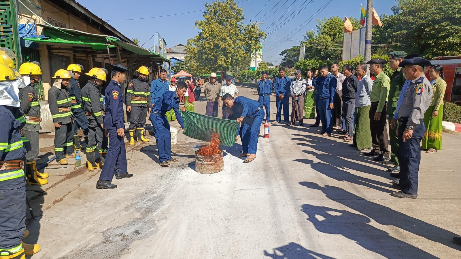 အဆိုပါ လက်တွေ့မီးငြှိမ်းသတ်သရုပ်ပြလေ့ကျင့်ခြင်းကို မြို့နယ်စီမံခန့်ခွဲရေးနှင့်အုပ်ချုပ်ရေးကော်မတီဥက္ကဋ္ဌ ဦးမျိုးသက်အောင်နှင့်အဖွဲ့ဝင်များ၊ မြို့နယ်စည်ပင်သာယာရေးအမှုဆောင်အရာရှိနှင့် မြို့နယ်စည်ပင်သာယာဝန်ထမ်းများ၊ မြို့နယ်လျှပ်စစ်အင်ဂျင်နီယာနှင့်ဝန်ထမ်းများ၊ ဈေးတာဝန်ခံ ဦးလင်းမင်းထွန်းနှင့်ဝန်ထမ်းများ၊ ဈေးအကျိုးတော်ဆောင်ကော်မတီဝင်များတက်ရောက်၍ လက်တွေ့ပါဝင်ဆောင်ရွက်ခဲ့ကြကြောင်း သိရသည်။