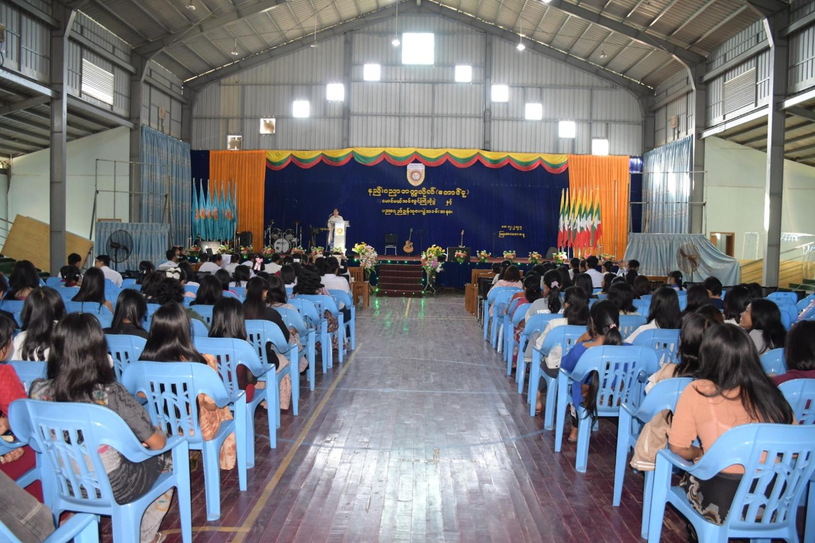 ပဲခူးတိုင်းဒေသကြီး၊ တောင်ငူခရိုင်၊ နည်းပညာတက္ကသိုလ် (တောင်ငူ)၌ (၂၀၂၅-၂၀၂၆) ပညာသင်နှစ် မောင်မယ်သစ်လွင်ကြိုဆိုပွဲနှင့် ပညာရည်ချွန်ဆုပေးပွဲအခမ်းအနားကို ယနေ့နံနက်ပိုင်းက ကျင်းပရာ နည်းပညာတက္ကသိုလ်(တောင်ငူ) ဒုတိယပါမောက္ခချုပ် ဒေါက်တာတင်ဝင်းမွန်၊ ဆရာ၊ ဆရာမများနှင့် ကျောင်းသား ကျောင်းသူများ စုစုပေါင်း (၅၀၀)ဦးခန့် တက်ရောက်ကြသည်။