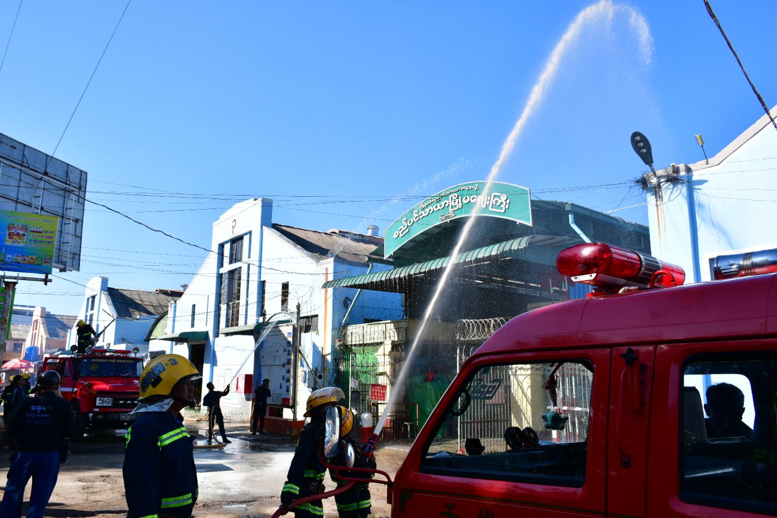 ပဲခူးတိုင်းဒေသကြီး ပြည်မြို့ ကမ်းနားလမ်းရှိ စည်ပင်သာယာမြို့မဈေးကြီး၌ ယနေ့နံနက်ပိုင်းက မြို့နယ်မီးသတ်ဦးစီးဌာနမှူး ဦးဆောင်သော သန္ဓေနှင့်အရန်မီးသတ်တပ်ဖွဲ့ဝင်များ၊ မြို့နယ်စည်ပင်သာယာရေးအဖွဲ့တာဝန်ရှိသူများနှင့် ဈေးသူဈေးသားများပူးပေါင်း၍ မီးဘေးကြိုတင်ကာကွယ်ရေး သရုပ်ပြဇာတ်တိုက်လေ့ကျင့်မှု ဆောင်ရွက်သည်။
