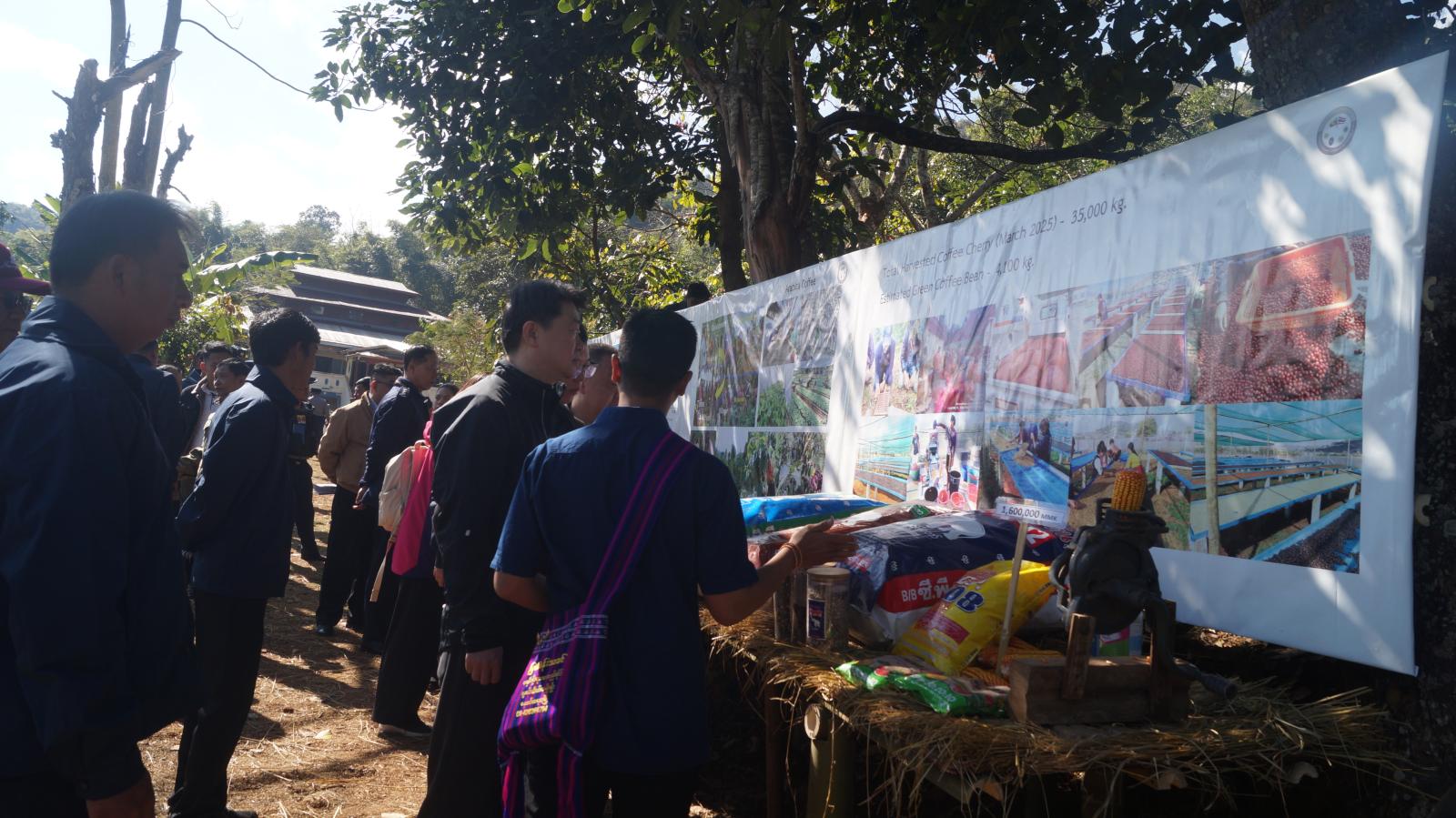 မြန်မာ-တရုတ် ကိုယ်စားလှယ်အဖွဲ့သည် မယ့်ဖားလုံဖောင်ဒေးရှင်းမှ ရေရှည်တည်တံ့သော အစားထိုးအသက်မွေဝမ်းကျောင်း ဖွံ့ဖြိုးရေးစီမံကိန်းအဖြစ် ဆောင်ရွက်နေသည့် ကော်ဖီစိုက်ပျိုးရေးခြံသို့ သွားရောက်လေ့လာပြီး စီမံကိန်းဒေသမှ စိုက်ပျိုးရေးတောင်သူများနှင့် ရင်းရင်းနှီးနှီးတွေ့ဆုံခဲ့ကြောင်း သိရသည်။