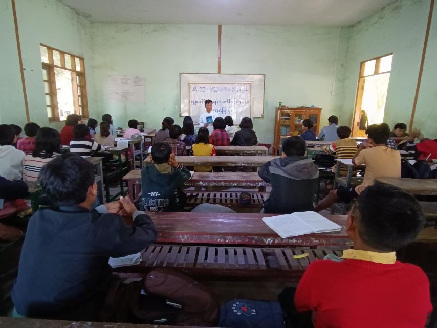 အဆိုပါအခမ်းအနား၌ ပြန်ကြားရေးနှင့်ပြည်သူ့ဆက်ဆံရေးဦးစီးဌာနမှ ဦးစီးအရာရှိ ဦးရဲဝင်းအောင်က သဘာဝဘေးအန္တရာယ်နှင့်ပတ်သက်၍ မီးဘေးအတွက်ကြိုတင်ပြင်ဆင်ရန်နှင့် ဆောင်ရန်/ ရှောင်ရန် အချက်များ၊ မီးငြိမ်းသတ်ရန် ပစ္စည်းများဖြစ်သော မီးချိတ်၊ မီးကပ်၊ ရေပုံး၊ သဲအိတ်များ၊ မီးသတ်ဆေးဘူးများ အသင့်ထားရှိရန်၊ အရေးပေါ်အချိန်တွင် သယ်ယူမည့် ပစ္စည်းများ၊ အရေးကြီး စာရွက်စာတမ်းများကို ကြိုတင်ပြင်ဆင်ထားရန်၊ အိမ်နှင့်ပတ်ဝန်းကျင်တွင် မီးလောင်လွယ်သော ပစ္စည်းများ၊ လောင်စာဆီများ၊ အမှိုက်များကို ရှင်းလင်းထားရန်၊ လျှပ်စစ်မီး၊ ဂက်စ်မီး၊ ထင်းမီး၊ မီးသွေးဖိုးများ အပါအဝင် မီးသုံးစွဲလျှင် အမြဲသတိရှိရန်နှင့် ငလျင်ဘေးအတွက် ငလျင်လှုပ်နေစဉ်တွင် လိုက်နာရန်အချက်များ၊ ကြောက်ရွံ့ထိတ်လန့်မှုမရှိပါနှင့် သတိရှိပါ၊ တည်ငြိမ်မှုရှိပါ၊ ၅ စက္ကန့်အတွင်း အဆောက်အအုံအပြင်သို့ ရောက်နိုင်ပါက ပြေးထွက်ပါ၊ မရောက်နိုင်ပါက ဘေးကင်းသောနေရာတွင် (ဝပ်ကာကိုင်) ပုံစံဖြင့်နေရမည်ဖြစ်ကြောင်း ဟောပြောခဲ့ပြီး၊ ဟောပြောပွဲသို့ ဆရာ၊ ဆရာမများနှင့် ကျောင်းသား၊ ကျောင်းသူ ၆၅ ဦးခန့် တက်ရောက်ခဲ့ကြောင်း သိရသည်။