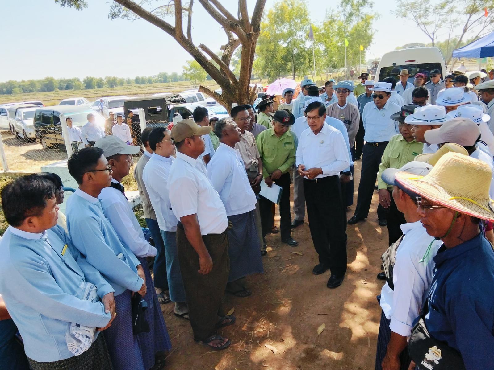 ဆက်လက်၍ ၂၀၂၅-၂၀၂၆ ခုနှစ် မျိုးစေ့ချကိရိယာ Drum Seeder ဖြင့်နွေစပါးစံပြကွက်စိုက်ပျိုးနေမှုများအား ကြည့်ရှုပြီး ပန်းတိုင်အထွက်နှုန်းသတ်မှတ်ထားသည့် သီးနှံ(၁၀)မျိုးနှင့် စပ်လျဉ်း၍ ပန်းတိုင်ရည်မှန်းချက်၊ အထွက်နှုန်းမကောင်းရခြင်း အကြောင်းအရာများ စီစစ်မေးမြန်နေမှုများအား လိုက်လံကြည့်ရှုကြကြောင်း သိရသည်။