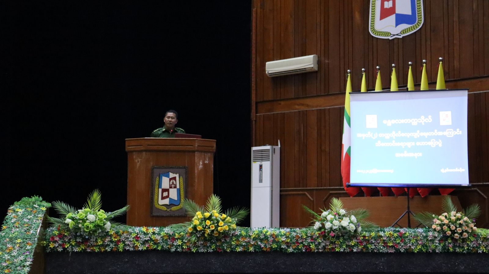 မန္တလေးတိုင်းဒေသကြီး၊ မန္တလေးတက္ကသိုလ်၌ အမှတ် (၂) တက္ကသိုလ်လေ့ကျင့်ရေးတပ်၊ တက္ကသိုလ်လေ့ကျင့်ရေးတပ်အကြောင်း သိကောင်းစရာများ ဟောပြောပွဲကို မန္တလေးတက္ကသိုလ်၊ ဘွဲ့နှင်းသဘင်ခန်းမ၌ ဒီဇင်ဘာ ၁၇ ရက်နေ့ မွန်းလွဲပိုင်းက ကျင်းပသည်။